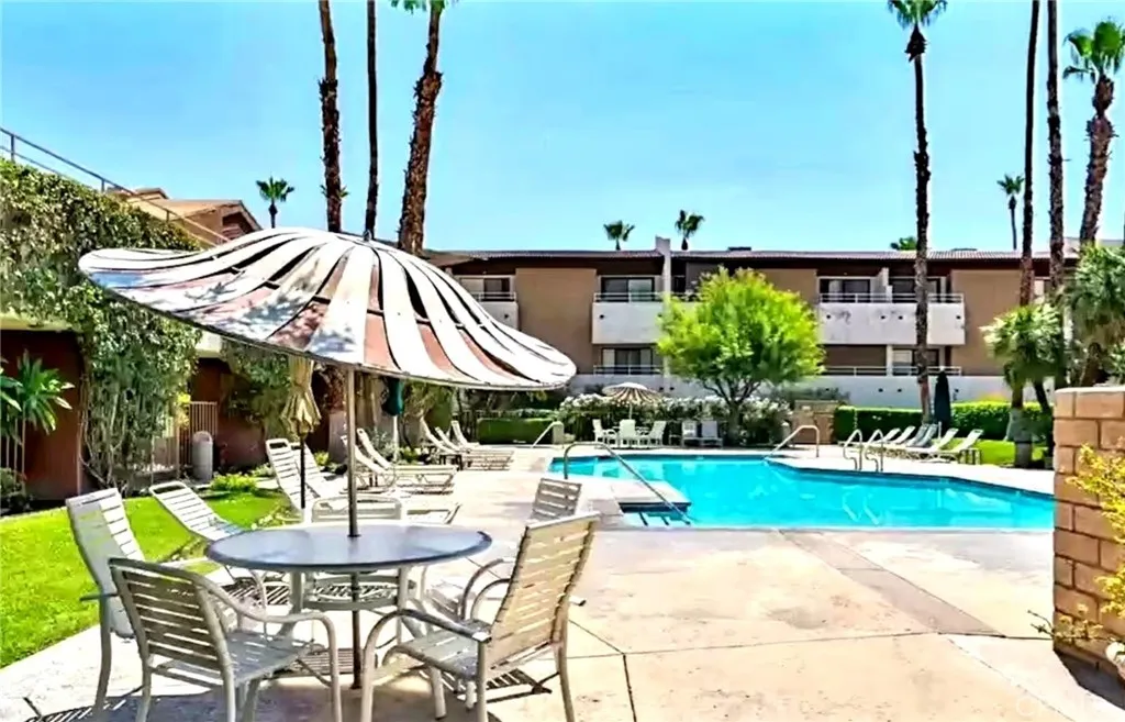 Resort-style living at the Biarritz in the heart of Palm Springs. The Biarritz is a unique landscape, set on nearly five acres and surrounded by desert mountain views. This well-maintained community offers a true getaway experience just moments from downtown dining, shopping, and entertainment, including Agua Caliente Casino Palm Springs. The HOA is highly sought after for its short-term rental flexibility, allowing rentals for just one night, making this an ideal investment opportunity, or part-time desert retreat (or both). Community amenities include a pool, two spas, and two tennis courts with pickleball lining, along with assigned covered parking. Privately positioned on the first floor and toward the rear of the complex, this unit offers a quiet, secluded setting away from road noise. Two balconies capture sweeping views of the surroundings, including breathtaking vistas of the Chocolate Mountains. Interior upgrades include energy-efficient lighting and a bathroom fan with a built-in speaker for added functionality and daily comfort. A proven short-term rental with strong performance, this property presents a compelling opportunity for both investors and end users seeking a low-maintenance Palm Springs escape.