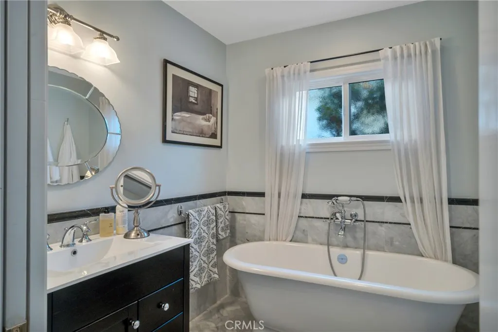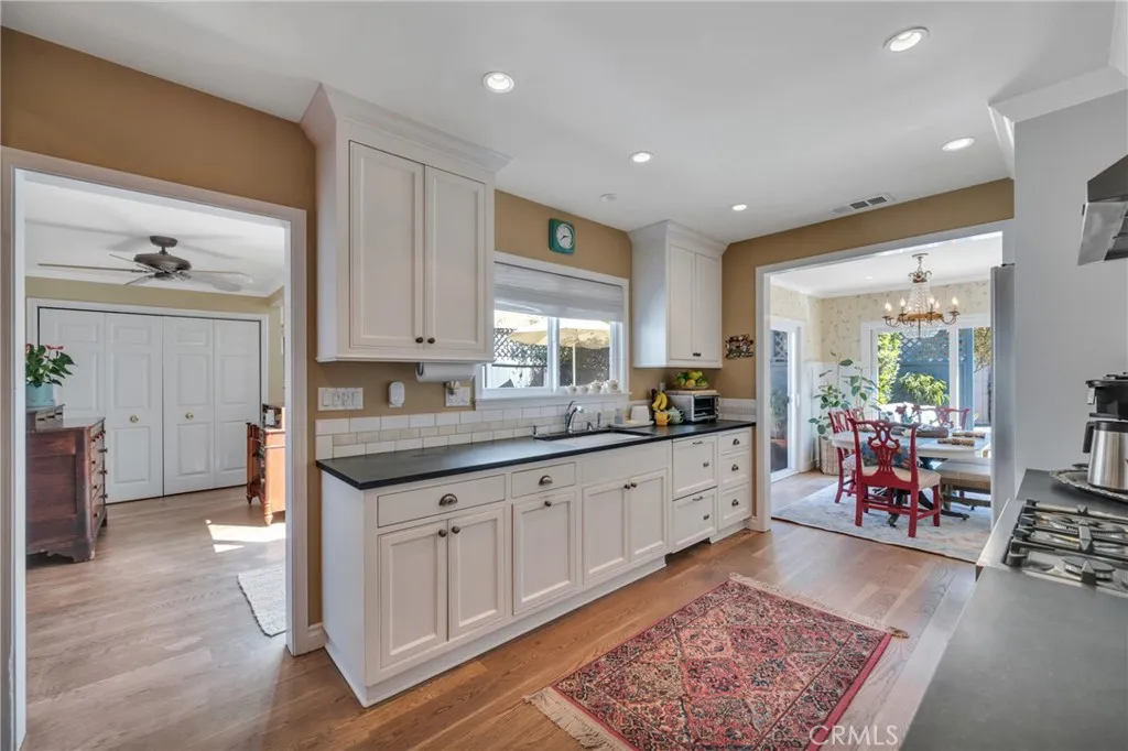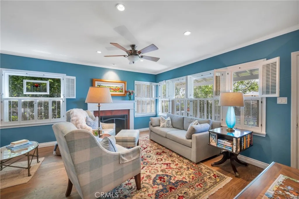 Experience the perfect blend of serenity and sophistication in this private retreat. Enveloped by lush, professional landscaping this home invites you in through a stunning living room, anchored by a classic fireplace and custom built-in bookshelves. The heart of the home features a tastefully remodeled kitchen boasting rich soapstone countertops, and a magnificent built-in china hutch. The main residence offers a versatile layout, including a refined, formal dining room and a breathtaking second floor primary sanctuary. This private level features an expansive sleeping quarters, a massive walk-in closet, and a spa like bath. Downstairs, the guest bath serves as a personal spa with an exquisite soaking tub and premium fixtures. Transition seamlessly to the outdoors through multiple sets of double doors leading to an extraordinary backyard. The property also features a detached 325 square foot bonus dwelling — complete with a kitchenette, full bath, and its own private patio— offering the perfect space for studio, guest house, or a quiet home office. Truly a turn key gem ready for its next chapter.