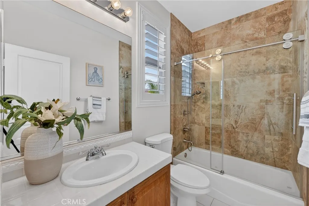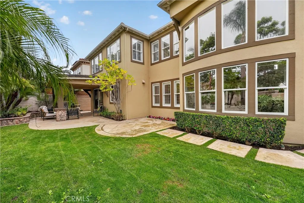 Welcome to an exceptional residence in the prestigious guard-gated community of The Peninsula at Huntington Seacliff, where refined coastal living meets timeless elegance. Ideally situated on a quiet cul-de-sac this expansive 4-bedroom, 4.5-bathroom home offers almost 3,700 square feet of thoughtfully designed living space. Designed for both comfort and sophistication, the home features a highly desirable main-level bedroom with a full en-suite bath—perfect for guests or multi-generational living. PLUS, there is still a separate powder bath for guests. Each of the four bedrooms boasts its own private bathroom, offering ultimate privacy and convenience. One of the secondary bedrooms even features a walk in closet, built in bookcases and a private balcony. The formal living room welcomes you with soaring volume ceilings and an abundance of natural light streaming through stunning windows that frame picturesque views of the backyard. Two inviting fireplaces—located in both the living room and family room—create warm, elegant gathering spaces throughout the home. The well-appointed interior includes all new LED lighting throughout, shutters, crown molding, new carpet, a large kitchen with a center island and generous storage, spacious laundry room with sink and laundry chute from upstairs, central vacuum system, a newer air conditioning system with 2 condensers for year-round comfort. Energy-efficient solar panels with a backup battery further enhance the home’s modern appeal. Step outside to a beautifully designed backyard retreat that is very private as there's no house behind you. The yard includes a covered patio with recessed lighting and built-in barbecue—ideal for entertaining or enjoying relaxed coastal evenings. Additional highlights include a three-car garage with built in cabinets and gated front courtyard welcoming your guests and your packages! Recently painted inside and out, this Turnberry home (the largest tract in The Peninsula) is a rare opportunity to own a luxurious home in one of Huntington Beach’s most sought-after communities. This unbeatable location just minutes from the renowned Huntington Club, the stunning beaches of Huntington Beach and within walking distance to Seacliff Elementary School, a National Blue Ribbon school repeatedly ranking one of the top elementary schools in California. Furthermore, residents have easy access to parks, gyms, grocery stores, Starbucks, restaurants and more all within walking or biking distance!
