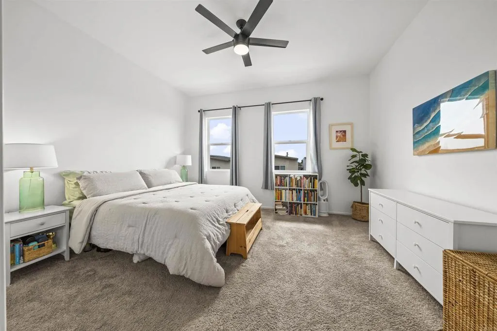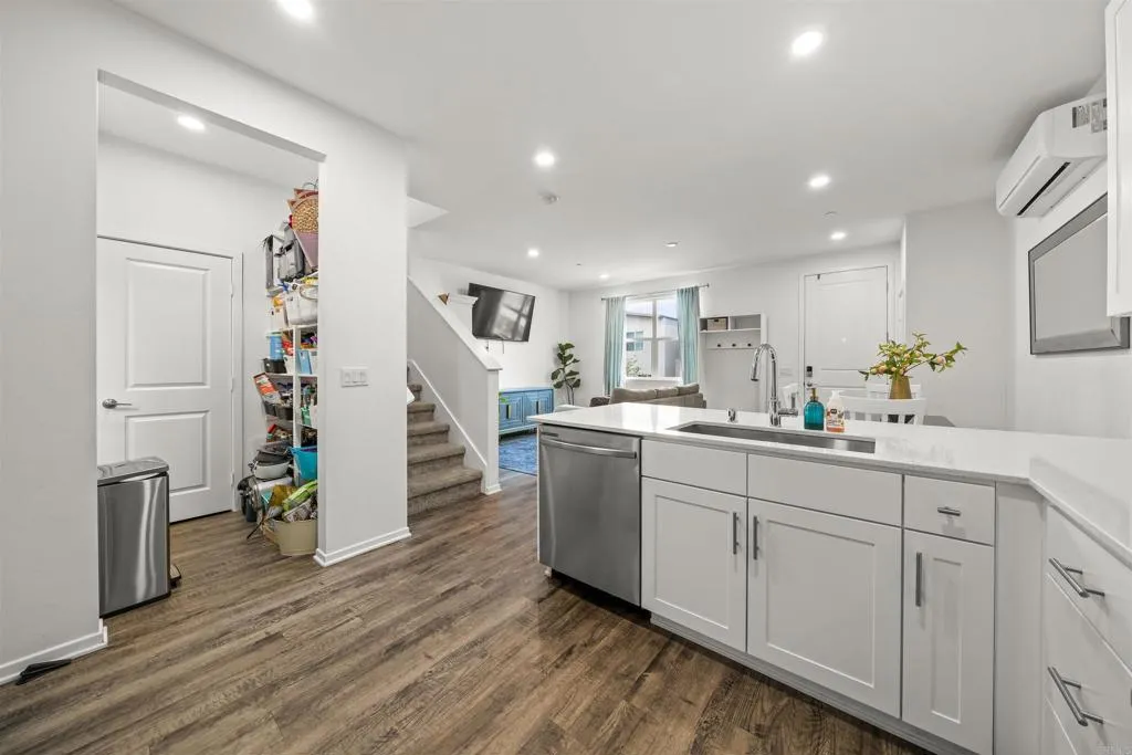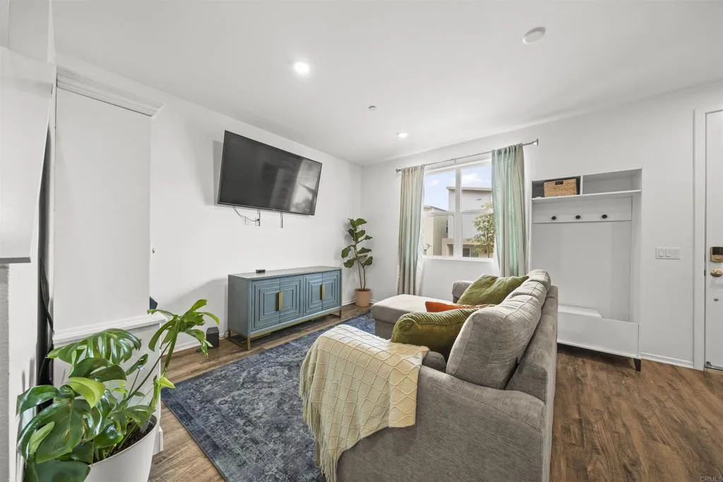 Welcome to this beautifully designed, like-new townhome offering the perfect blend of modern comfort and everyday convenience. Built in 2024, this 3-bedroom, 2.5-bath residence features approximately 1,430 square feet of thoughtfully designed living space with a bright, open-concept floor plan and stylish contemporary finishes throughout. The main living area flows seamlessly into the kitchen and dining space, creating an ideal setting for both entertaining and daily living. Upstairs, spacious bedrooms provide comfort and privacy, while the overall layout maximizes functionality and natural light. This home is equipped with paid solar and a Level 2 EV charging outlet, offering energy efficiency and long-term savings for today’s lifestyle. A two-car attached garage adds convenience and additional storage. Located in a newer community, residents enjoy easy access to local parks, schools, shopping, dining, and major medical centers, all while being just minutes from the best of San Diego. Move-in ready and built for modern living, this home is an exceptional opportunity to own a newer construction property in a growing and centrally located neighborhood.