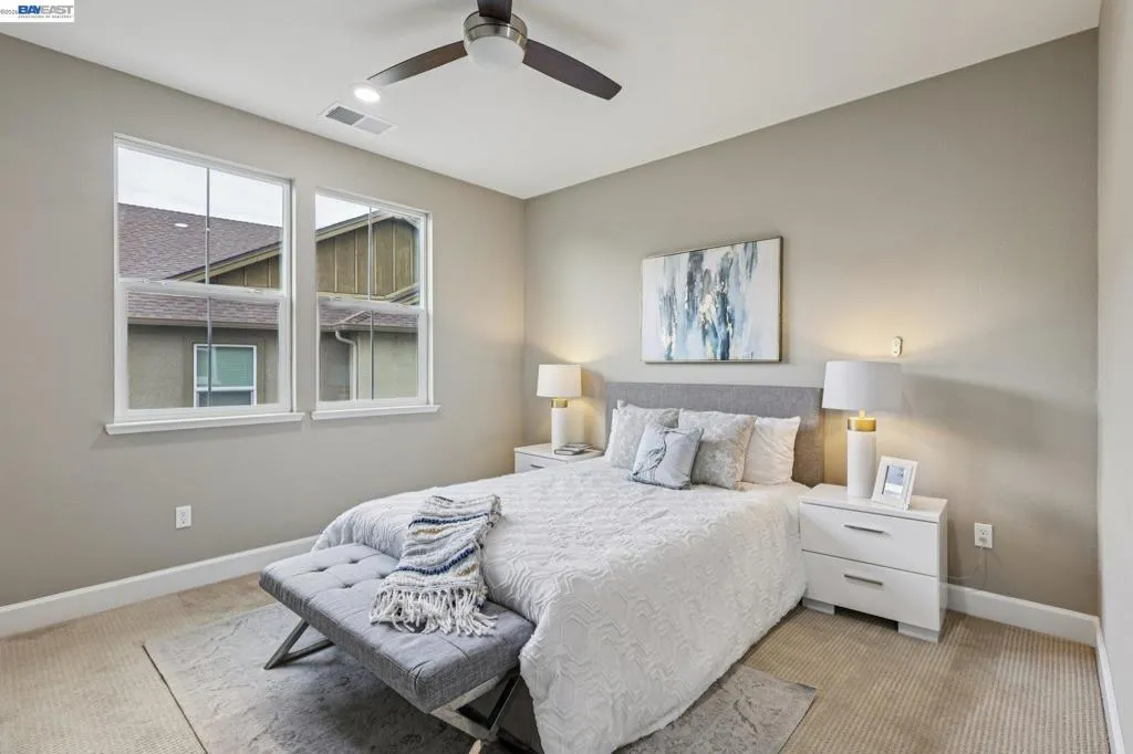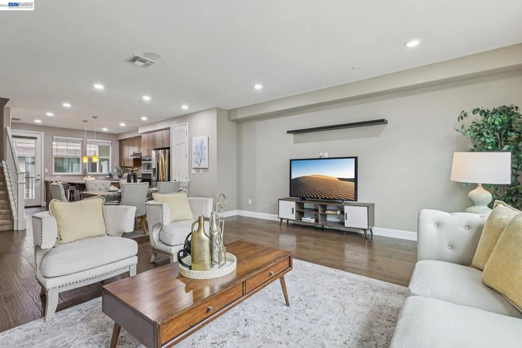 Gorgeous perfect EAST facing 3 story home in AWARD WINNING most desirable gated community of Wallis Ranch in East Dublin with TOP rated schools! Bedroom and full bath on first floor. 2nd floor has gourmet kitchen with upgraded cabinets, quartz countertops with oversize great room perfect for social gatherings for family and friends. Hardwood and carpet through out the house. Master bedroom features gorgeous bathroom, & a large walk in closet. Living room has speakers wiring installed in the ceiling and walls for Dolby Atmos 5.4.2 surround system. Garage has epoxy floors, painted walls and lots of built - in cabinets. Residents enjoy many lifestyle amenities within the sprawling, gated community. Minutes away from Livermore outlets, Stoneridge mall, shopping centers, and high-end restaurants, Fallon Sports parks, wave water park and, TOP rated schools! Easy access to 580/680 and Bart!