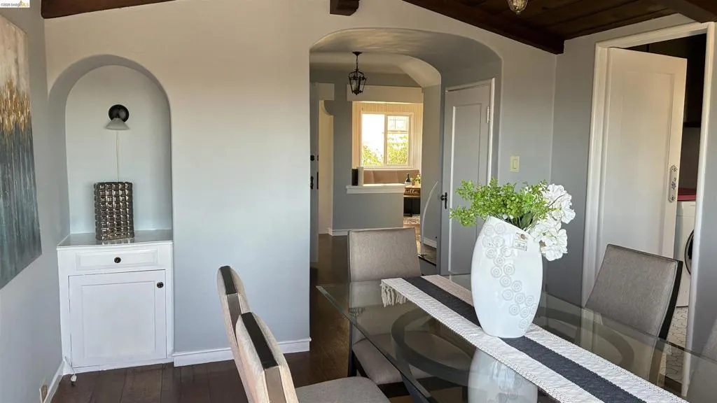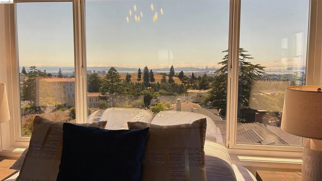 Enjoy breathtaking water views of the SF Bay, Bay Bridge, and Golden Gate Bridge from this traditional yet beautifully updated home, ideally located in the desirable Upper Rockridge neighborhood—known for its excellent schools and peaceful surroundings. The recently renovated kitchen features elegant cabinetry, quartz-style countertops, and modern crystal lighting that adds a touch of sophistication. A newly constructed ADU (approx. 300 sq. ft.) with a full bath provides flexible living space and offers both interior and private backyard entrances. Architectural details abound, from dramatic wood beam ceilings to gleaming oak hardwood floors. Additional highlights include dual-pane windows, freshly painted interiors, and a remote-controlled two-car garage with interior access. Fruit trees, plants in the fully fenced back yard. How pleasant it is to sit ion the deck shaded by greenery chat with family or friends over a tea.