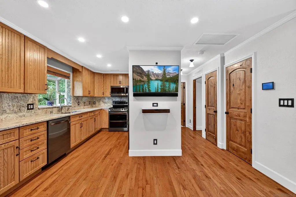 A rare opportunity to own a fully reimagined mountain retreat in the heart of Julian—where modern innovation meets timeless nature. This meticulously upgraded cabin has been thoughtfully redesigned from the ground up, offering a “like-new” experience with all-new electrical, plumbing, roofing, windows, and high-end finishes throughout. Step into a lifestyle defined by self-sufficiency and comfort, featuring a state-of-the-art solar system with Tesla backup batteries, dual-fuel HVAC, tankless water heater, and smart-home integration—all designed for energy efficiency and effortless living. The expansive wraparound deck and stunning 300-degree view solarium invite you to soak in panoramic mountain vistas, crisp alpine air, and unforgettable stargazing in one of California’s designated dark-sky regions. Surrounded by natural beauty, this property offers a true connection to the outdoors—where deer and wildlife wander freely, and peaceful privacy enhances every moment. The grounds are beautifully curated with native landscaping, stonework, and reinforced features, creating a setting that feels both refined and organic. Ideally located just minutes from downtown Julian, enjoy easy access to charming shops, dining, and year-round attractions, while still experiencing the tranquility of a private mountain escape. Perfect as a second home, vacation rental, or Airbnb investment, this one-of-a-kind property stands apart by combining luxury upgrades, sustainable living, and the serenity of nature into a truly exceptional offering. A rare opportunity to own a fully reimagined mountain retreat in the heart of Julian—where modern innovation meets timeless nature. This meticulously upgraded cabin has been thoughtfully redesigned from the ground up, offering a “like-new” experience with all-new electrical, plumbing, roofing, windows, and high-end finishes throughout. Step into a lifestyle defined by self-sufficiency and comfort, featuring a state-of-the-art solar system with Tesla backup batteries, dual-fuel HVAC, tankless water heater, and smart-home integration—all designed for energy efficiency and effortless living. The expansive wraparound deck and stunning 300-degree view solarium invite you to soak in panoramic mountain vistas, crisp alpine air, and unforgettable stargazing in one of California’s designated dark-sky regions. Surrounded by natural beauty, this property offers a true connection to the outdoors—where deer and wildlife wander freely, and peaceful privacy enhances every moment. The grounds are beautifully curated with native landscaping, stonework, and reinforced features, creating a setting that feels both refined and organic. Ideally located just minutes from downtown Julian, enjoy easy access to charming shops, dining, and year-round attractions, while still experiencing the tranquility of a private mountain escape. Perfect as a second home, vacation rental, or Airbnb investment, this one-of-a-kind property stands apart by combining luxury upgrades, sustainable living, and the serenity of nature into a truly exceptional offering.