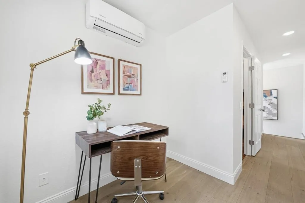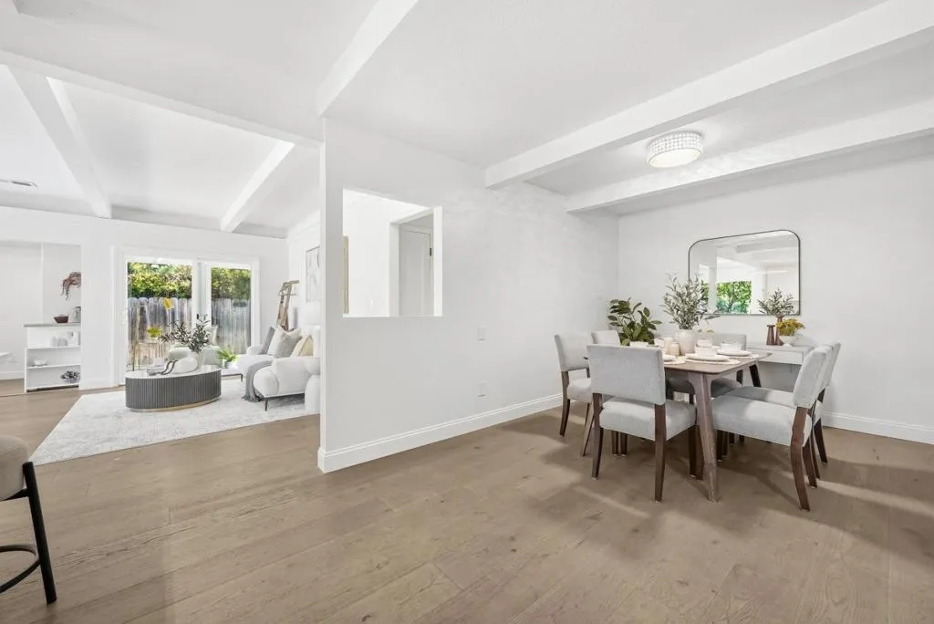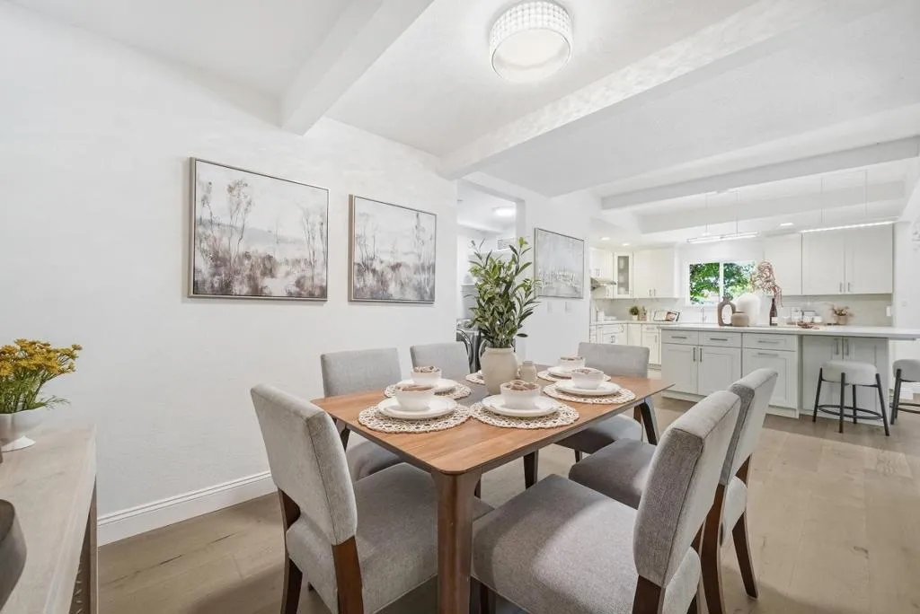 Welcome to this beautiful two-story single-family home in Sunnyvale, set on an expansive 8,850 sqft lot. A paved front path leads into a spacious living room with large view windows overlooking the front yard. The space flows seamlessly into a stunning kitchen featuring a center island highlighted by modern pendant lighting, stylish countertops, stainless steel appliances, ample white cabinetry, and recessed lighting. The connected dining room is perfect for gatherings, accented by a crystal ceiling light. The east hallway leads to bedrooms and an updated bath with a skylight, double vanity with quartz countertops, and a stall shower. Along the west hallway are additional rooms and a hallway bath with double vanity, quartz countertops, and a stall shower. A bonus sunroom sits at the back of the home. Upstairs features additional rooms and an office, along with an updated hallway bath featuring a double vanity, lighted mirror, and stall shower. The large backyard is ideal for outdoor activities. Additional features include solar panels, in-unit laundry, and an attached garage. Conveniently located near restaurants and parks such as Las Palmas Park, as well as groceries such as Safeway and Trader Joes. Enjoy great public schools and easy access to major tech companies.