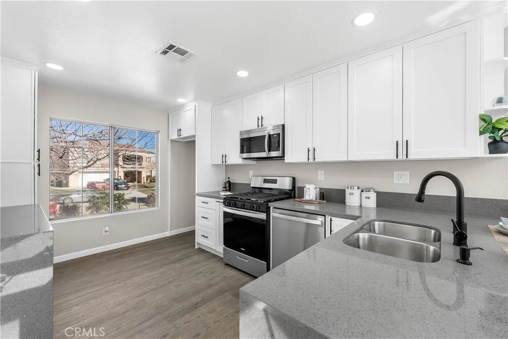FHA Financeable!!! Fabulous Rancho Vista Home ...Fully Rehabbed ! No HOA .. No Mello Roos..Huge Open Floor Plan... Three Bedrooms ..Three Baths.. Two Car Garage .. .Brand new super cool wood vinyl laminate floors throughout the floor plan, the kitchen has been renovated with Custom White shaker cabinets, Quartz Countertops, Waterfall Design.. backsplash, & Brand New Stainless Steel Appliances.. The bathrooms have been renovated with new vanity vanities, Quartz countertops & deep under mounted sinks with new tubs and showers. Drought free lanscaped in the front & back yard...Good sized Lot at almost 9,000 sqft ..Plenty of privacy and room to play..Come preview this rare property offering today, you'll be pleasantly surprised! *