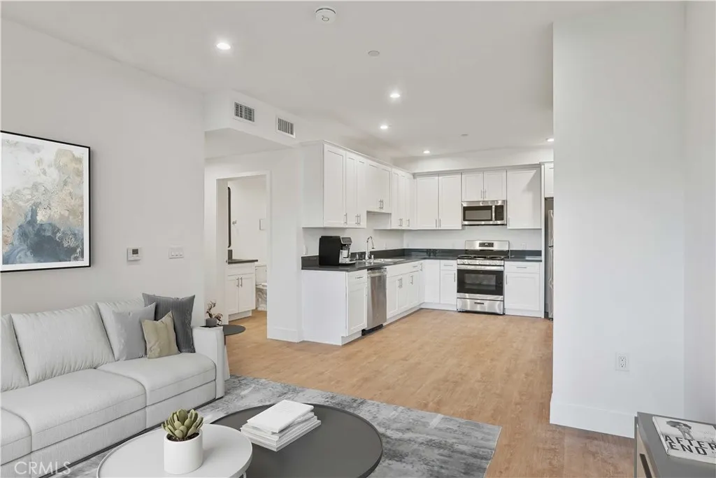Grand Opening Special Promotion 1 month FREE with a 13 month Lease. The Listed Price includes the 1 month free spread across 13 months. Newer construction apartment building now available for immediate occupancy, all units have never been lived in, all units will provide a new stainless steel refrigerator, a new laundry washer & dryer plus storage closet, EV Charging stations, and private balcony space. To book a tour visit: 8750Sepulveda dot com. The well-designed 5 story building offers a total of 43 units including, 19 one-bedroom one-full bathroom, and 24 two-bedroom two-bathroom units. Located underneath; gated and covered, each one-bedroom unit will have 1 car parking space, and each two-bedroom unit will have 2 car parking spaces. The building offers contemporary interior designs, 5 different floor plans to accommodate your needs, including a den or office space, a living room in-between bedrooms for roommate privacy, open concept kitchen to living room, high-ceilings, laundry room enclosed with a panel door, and en-suite bed & bath. Luxury materials include white shaker-cabinets with panel doors and brush-nickel hardware, quartz counter-tops, flooring luxury vinyl planks (no carpet), smooth white walls and ceilings, panel doors, walk-in closets and side-by-side closets, LED daylight recessed lights in the ceiling, air ducts in each room for central AC & heating, TV and entertainment wall outlets at eye-level to eliminate exposed cable and power wires (clean TV entertainment presentation). All new kitchen appliances including a stainless steel refrigerator, stainless steel dishwasher, stainless steel stove/oven range, stainless steel built-in microwave, and stainless steel sink. All units include smoke and carbon monoxide detectors, fire alarm, fire sprinklers, large dual-pane vinyl windows and sliders. If residing off Parthenia St, you’ll see views of the 2024 remodeled North Hills Community Park; featuring a community center or club house, security gates, enhanced lighting, sport courts, soccer field, bathrooms, bicycle racks, and various playgrounds. Please be advised, the pictures shown are for units 506,507,508,509, and 510, and are virtually staged for a visual presentation only and are followed by the actual real life view, the units are not physically staged. The floor plans of units 506,507,508,509, and 510 represent 5 different floor plans, you’re welcomed to tour these and all other units to ensure your new home comfort is met.