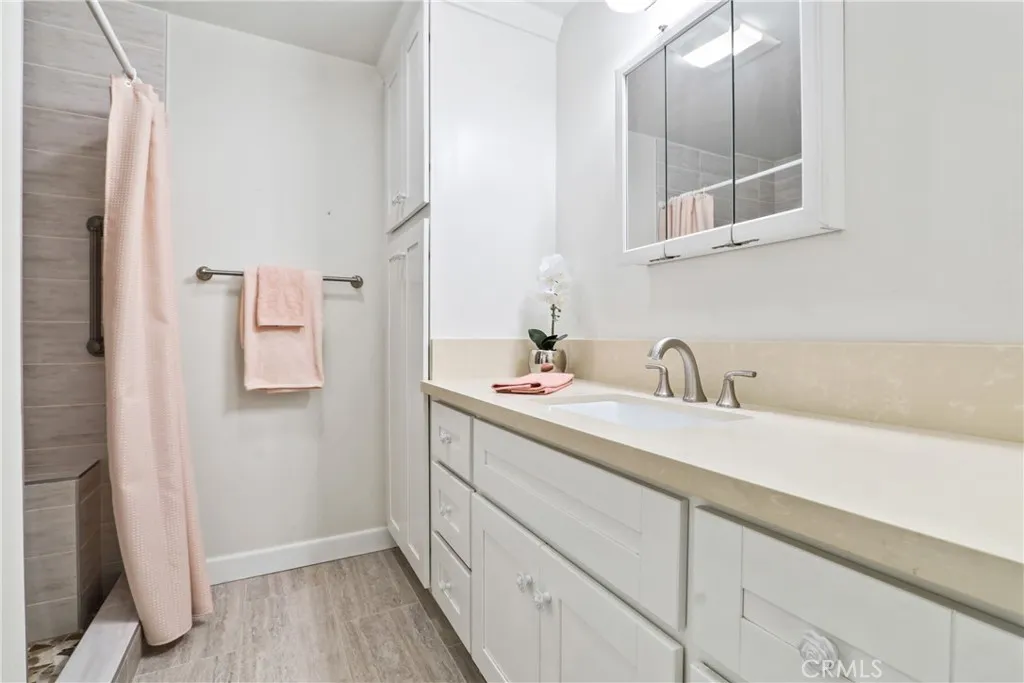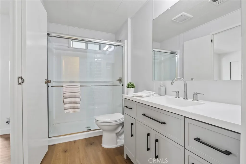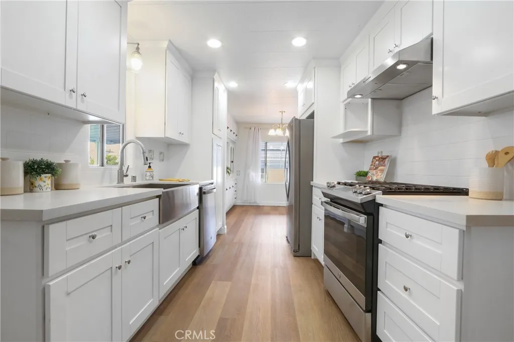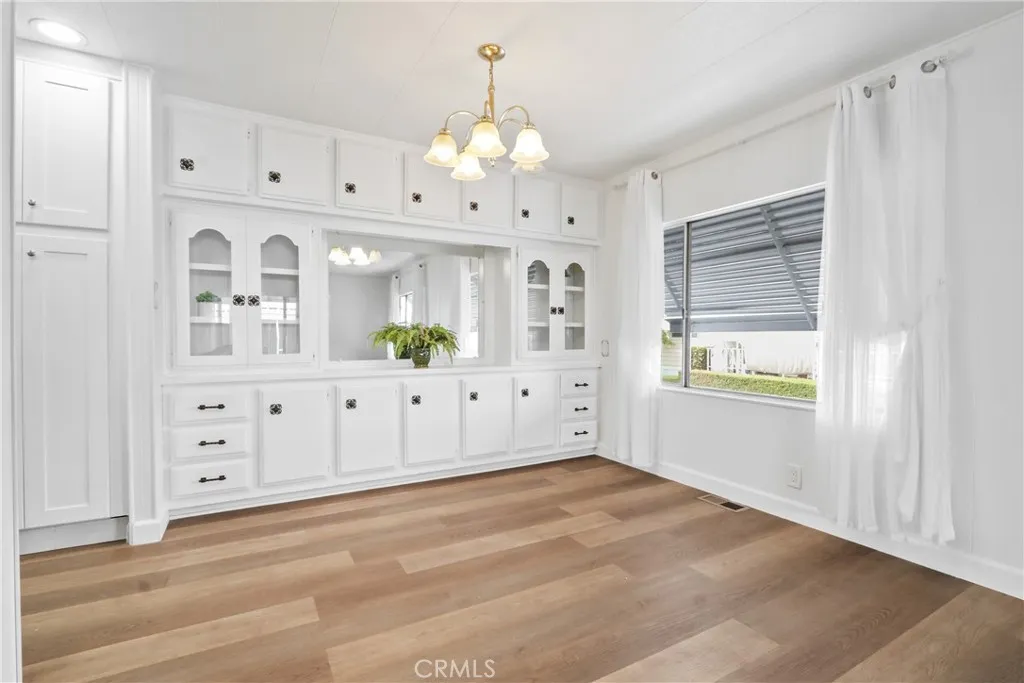 Affordable senior living at its very best! Welcome to San Rafael, one of the South Bay’s premier Manufactured Home communities. Located on a quiet street on an oversized lot, this remodeled 2 bedroom, 2 bath home is absolutely turnkey. Enter into a bright and open living room with sun streaming through its many windows, a fresh light paint palette, and newer laminate flooring. A cozy fireplace and built-in shelving anchor the space. The kitchen has been recently renovated with white shaker cabinets, quartz counters, a deep farmhouse apron sink, and features stainless appliances, including the side-by-side fridge! The adjacent dining space offers lots of extra storage with its built-in buffet. A 2nd living space is perfect for entertaining with its adjoining wet bar. The primary bedroom suite is quite spacious and is located at the back of the home for ultimate privacy and has storage and closet space galore! A built-in dresser is a real space-saver, and there is a wall closet in addition to a walk-in closet! Getting ready for the day is a breeze, with a separate dressing area, and the bathroom is completely redone! A large vanity with quartz counters and a custom walk-in shower with seating was designed with convenience and comfort in mind. The second bedroom perfect features an attached sunroom and even has a separate entrance off the front porch. A newly renovated bathroom is also accessible from the bedroom or the main hallway. A new vanity, new fixtures and flooring and a brand-new shower enclosure are all there for you to enjoy. This home also features stackable laundry with the washer/dryer included. As if this is not enough, this home also offers a BRAND NEW ROOF, covered front porch area, two storage sheds and a spacious yard featuring mature fruit-bearing apple and avocado trees. Low maintenance vinyl fencing surrounds the space. Guest parking is located just outside your driveway for added convenience and also offers distance between neighbors. You won’t have to go far to socialize – this park offers the key to an active lifestyle! With a large community center featuring a game room, swimming pool, 2 spas, and pickleball courts, you’ll have plenty to do! The location is also a winner – close to medical facilities, stores, and freeway access, this is an opportunity you won't want to miss!
