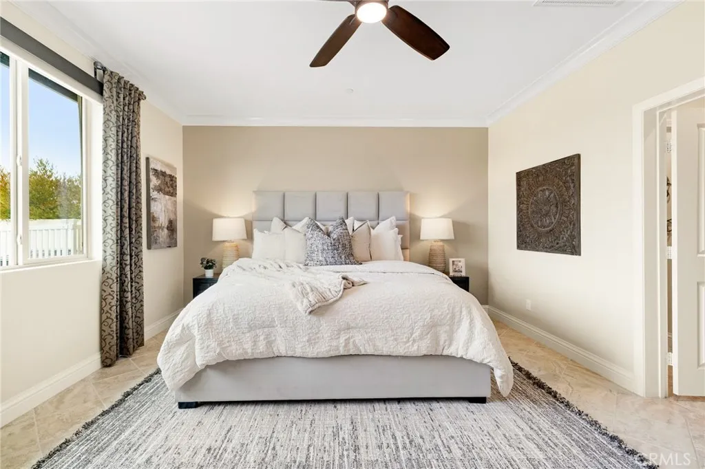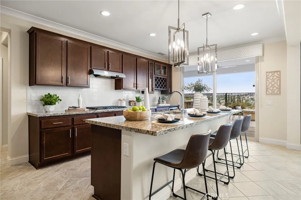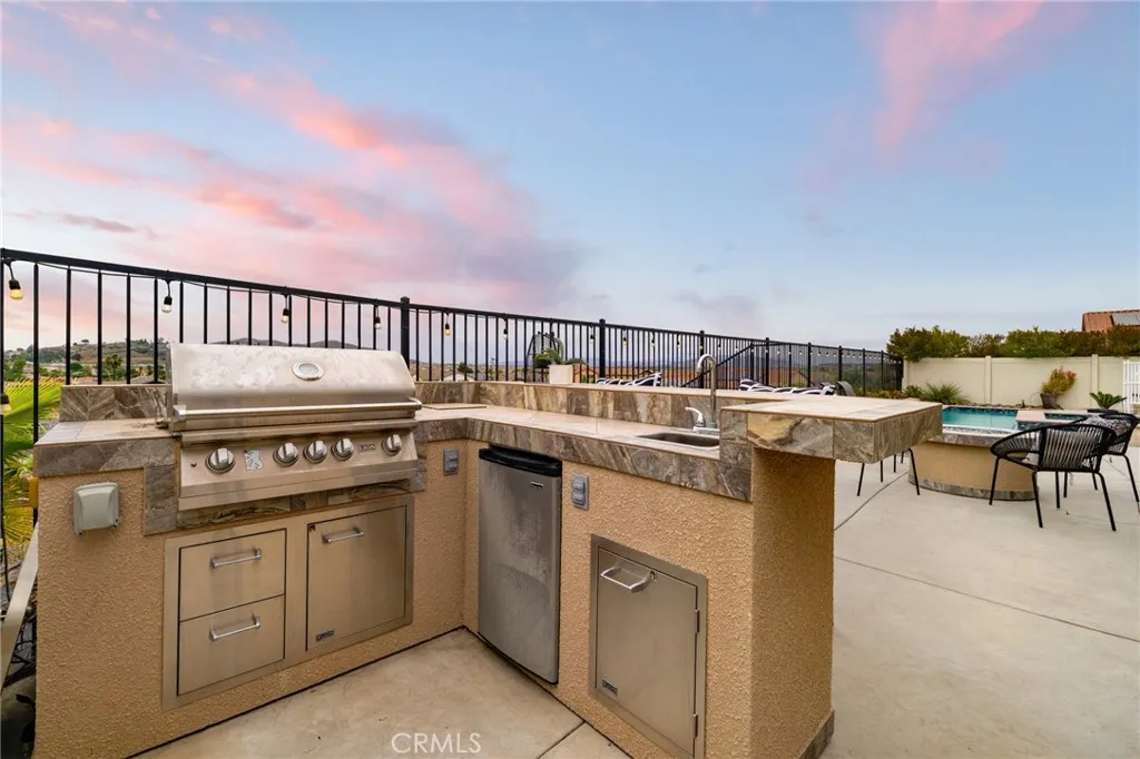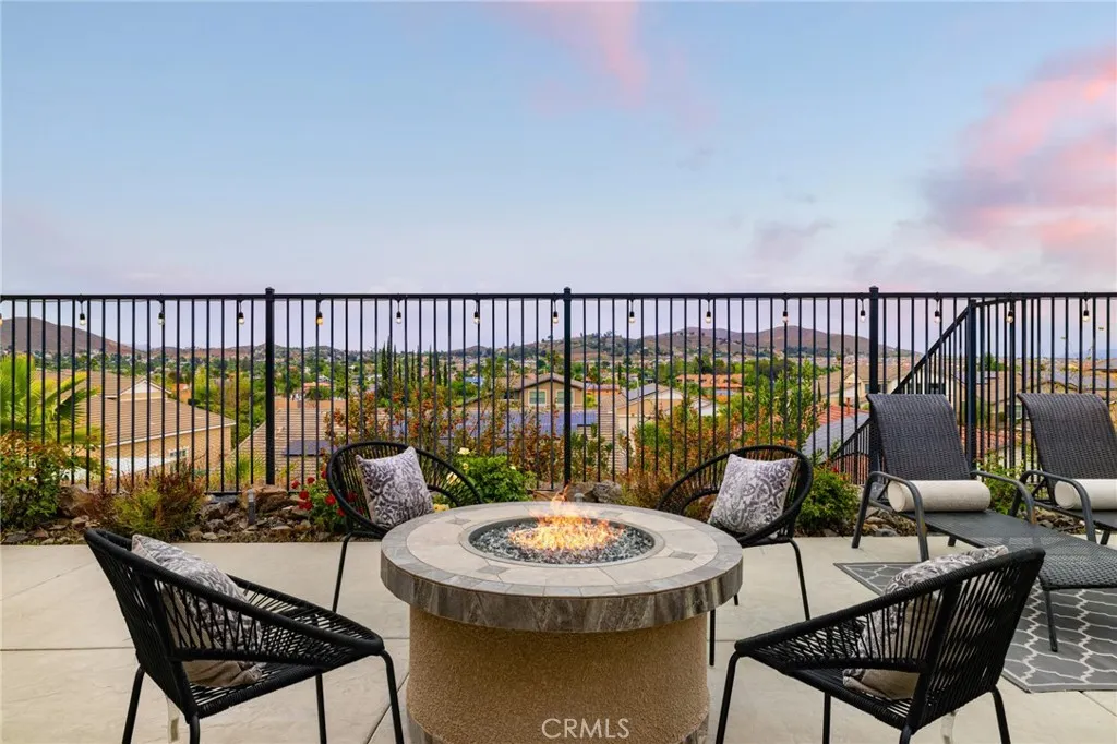 A luxury pool home awaits you in the gated community of Province at Audie Murphy Ranch, in Menifee, boasting hundreds of thousands in designer upgrades and breathtaking mountain views. This one-of-a-kind home offers 4 bedrooms, 2.5 baths, an office, owned solar plus Tesla battery, a 26' long lap pool, 10-person spa, Govee lights and extra electrical throughout the home. The exterior of this ranch style property boasts drought tolerant landscaping and custom steps up to the quaint porch overlooking the hillside. A beautiful custom glass front door and retractable screen greet you into the home offering tall ceilings, tile floors, custom paint, recessed lighting, crown molding, custom window coverings throughout and a highly desirable floor plan. Off the entrance of the 3100 sqft property are two large secondary bedrooms with walk-in closets, one with a built-in bookshelf which share a secondary bath featuring dual sinks and a shower tub combo, that sits across from a powder bath. A junior suite offers an extra-large bedroom with a massive walk-in closet, built in bookshelves and would be the perfect game room. The Great Room features a custom stone fireplace with heat protected floating mantel, built-in open cabinets and floating shelves and large view windows. The dining room offers a quiet cool whole house fan. The gourmet kitchen features granite counters, subway tile backsplash, an eat-up island, stainless steel appliances, wine fridge, wine rack and large walk-in pantry with extra shelves built-in. Behind the kitchen is an open office boasting a shiplap wall, built-in bookcase and phone-controlled ceiling fan. The butler’s pantry is upgraded with glass front cabinets across from the 3-car tandem garage offering a custom work bench, 120 and 210 capabilities. The laundry room boasts a wash sink, folding area and tons of storage! Just off the Great Room is the Primary Bedroom with custom paint, an attached bath boasting a walk-in shower, soaking tub, dual vanity, built in linen area and large walk-in closet with premium built-in organization. The entertainers yard boasts a large CA Room with recessed lighting, ceiling fan, wood wall for privacy, gas fire pit, built-in BBQ with sink and fridge, solar activated lighting, cumquat and lemon trees. The Community features pools, spas, sports courts, club house, trails, skate park, Elementary and Middle schools & is between the 15 & 215 fwys, close to shopping & the wineries!