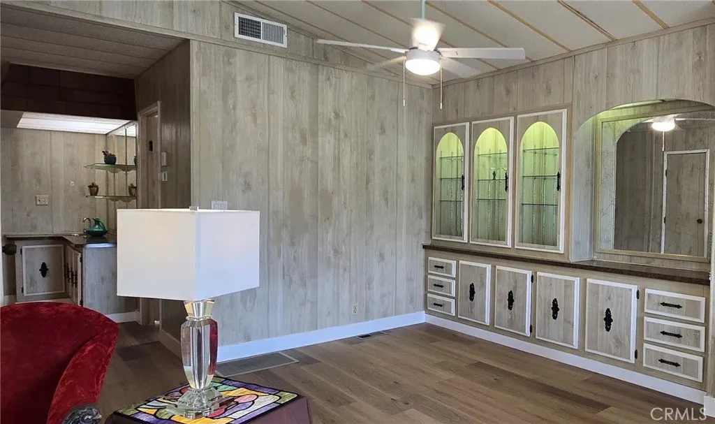 Discover a "Character-Filled Gem" in South Palm Desert. This "Vintage Soul" sanctuary is a meticulously reimagined 1,440 sq. ft. retreat reflecting 19 years of pride and emotion from its dedicated owner. The journey begins at the rear of the home - a private, secluded sanctuary filled with the pleasant fragrance of jasmine vines and a quiet, manicured garden. Inside, the Primary Suite offers a rare luxury two dedicated bathrooms: one with a custom walk-in shower and the other with a sun-drenched "flush-to-ground" bathtub. Relax in the cozy family room featuring a classic Martini Bar with vintage lit canopy, overlooking the formal dining area and its lighted "Fashion Manor" shelving, perfect for displaying your finest China. The versatile ~360 sq. ft. "Bonus Wing" features a walk-in closet and dual access from family room to the front porch. From the street, the curb appeal is unmatched: a stunning tiered flower garden wraps the porch, while a massive, lush flower bed provides natural privacy for the spacious living room from its large windows. Stay ice-cold with a professional "Quadruple-Threat" climate system: Central AC, Evaporative Cooling, 4 zoned units, and updated fans. Whether seeking a Coachella getaway or a turnkey retirement residence, this 19-year labor of love is a must-see! ??