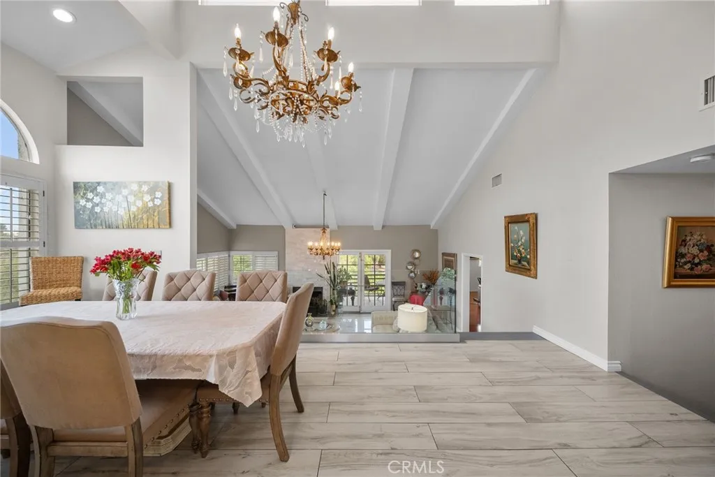This exceptional South of Ventura Boulevard residence offers nearly 2,800 square feet of beautifully designed living space in one of Woodland Hills' most sought-after neighborhoods. Built in 1979, this two-story home showcases an open and airy floor plan filled with natural light, soaring vaulted ceilings, and expansive windows that capture picturesque valley and canyon views. The updated kitchen and dining area serve as the heart of the home, flowing effortlessly into the inviting living room, creating an ideal space for both everyday living and entertaining. French doors open to a spacious balcony, offering seamless indoor-outdoor living and the perfect setting to enjoy the surrounding views. A separate private family room with an enclosed balcony provides additional flexible space for relaxation, media, or gatherings. The primary suite features a generous retreat area, walk-in closet, and a remodeled bathroom designed for comfort and style. Each additional bedroom enjoys direct access to beautifully updated bathrooms, enhancing both privacy and convenience. The expansive, flat backyard offers a versatile outdoor setting complete with a sport court, ideal for recreation, entertaining, or simply enjoying the California lifestyle. Situated on an approximately 9,500 square foot lot, the property also includes a two-car garage and 32 fully paid solar panels (approximately 9.5 kW), delivering long-term energy efficiency and savings. Tesla EV charger installed. Blending timeless architecture with thoughtful modern updates, this home offers a flexible and functional layout that lives beautifully for both everyday comfort and special occasions.
