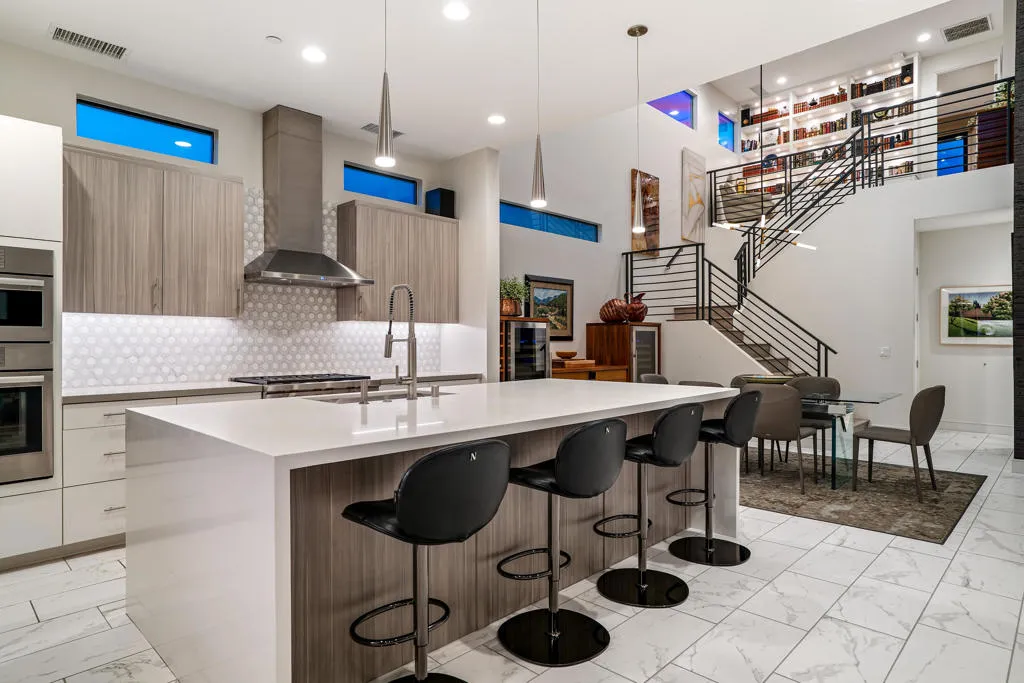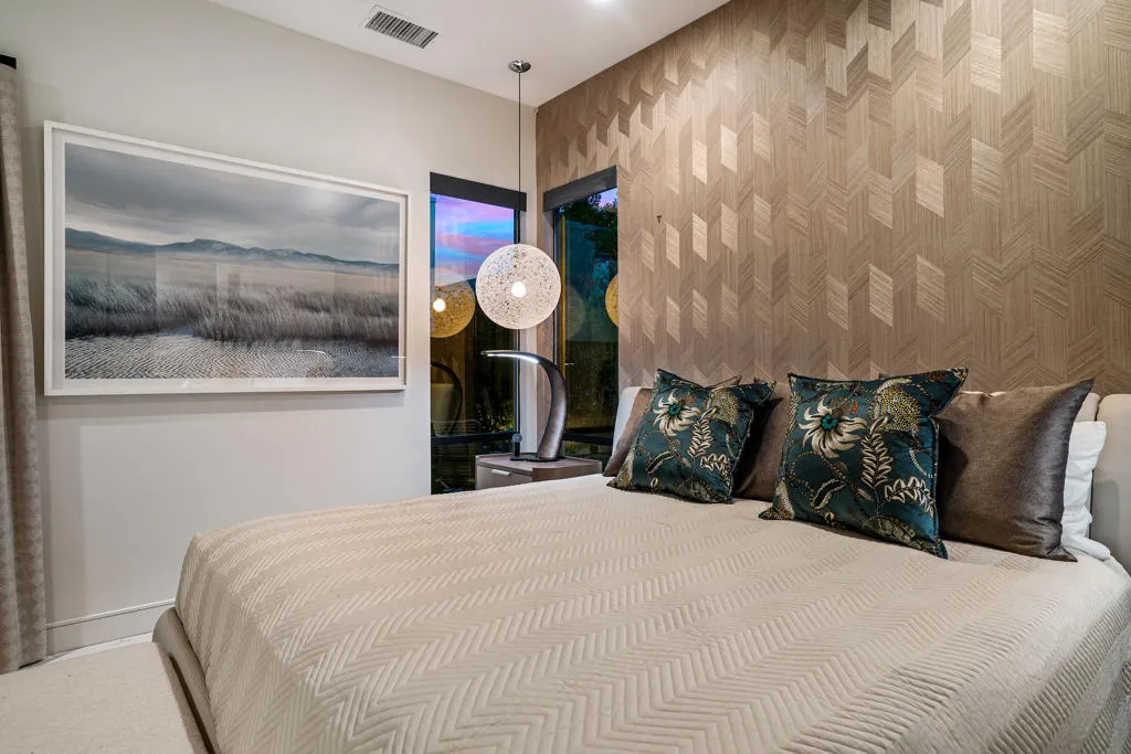 Discover elevated desert living in arguably one of the most upgraded homes in the highly sought-after Vibe Community! Showcasing over $220K in recent enhancements and an impressive collection of designer finishes, this exceptional residence offers 3 bedrooms, 3.5 bathrooms, and is perfectly positioned on one of the largest lots in the community. Step inside to a stunning open-concept great room where soaring ceilings, clerestory windows, and a dramatic Moroccan marble fireplace create a sense of modern elegance. Expansive sliding glass doors seamlessly blur the lines between indoor and outdoor living, perfect for effortless entertaining. The chef's kitchen is nothing short of spectacular, featuring quartz countertops, an oversized island, upgraded appliance package including a Wolf cooktop, and a spacious walk-in pantry. The adjacent dining area is designed to impress, complete with dual built-in wine refrigerators and a custom buffet, ideal for hosting unforgettable gatherings. The main-level primary suite is a private sanctuary, offering dual walk-in closets and a spa-inspired bathroom with full tile surround and a luxurious walk-in rain shower. Upstairs, you'll find custom wood plank flooring, illuminated built-in shelving, an airy loft space ideal for a home office or lounge, and a beautifully appointed guest ensuite. A detached casita provides a third private guest retreat with its own entrance and direct courtyard access - perfect for visitors or extended stays. The upgrades continue outdoors with a true entertainer's backyard: Italian tile patio, custom outdoor kitchen with gas grill and pellet smoker, retractable awnings, a built-in firepit, and newly designed raised garden beds. Additional highlights include 42 owned solar panels, whole-home water filtration, and a temperature-controlled garage with a sleek frosted glass door. Residents of the Vibe enjoy resort-style amenities including a heated pool and spa, expansive sun deck, clubhouse with outdoor grill, two dog parks, EV charging stations, and bocce ball courts. This is a rare opportunity to own a one-of-a-kind showpiece that perfectly captures the essence of luxury, lifestyle, and Palm Springs living.