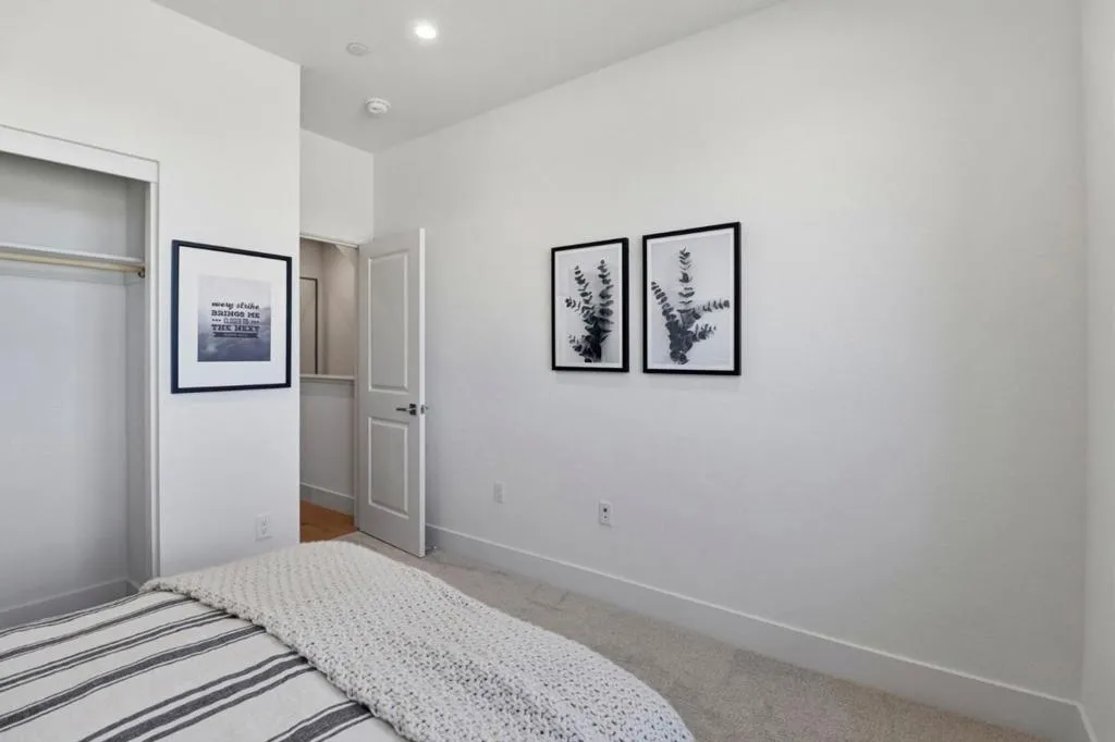 Residence 3 offers 3 bedrooms, a ground floor den, and 3 full bathrooms ideal for families, guests, or a home office. The open-concept main level features a kitchen, dining area, and family room that flow seamlessly together. The kitchen is appointed with Bosch stainless steel appliances including refrigerator + LG washer/dryer, walk-in pantry, quartz countertops, and shaker-style white cabinets. Engineered wood floors on the first and second levels add warmth and elegance. The top-floor primary suite includes a walk-in closet and en-suite bathroom, providing a private retreat. Additional bedroom and a full bath offer flexibility. Enjoy outdoor living with a private patio and deck. Discover 28Fifty, a new community of 48 modern townhomes by SummerHill Homes in desirable Midtown Palo Alto. Community amenities include access to a central park area for gatherings and relaxation. Conveniently located near major employers, highways, and the Dumbarton Bridge, and less than 3 miles from downtown Palo Alto. Top-ranked schools. Quick move-in!
