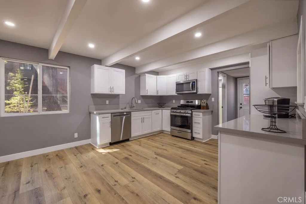Walking distance to Snow Summit, this stunning custom gambrel has been beautifully remodeled inside and out, offering the perfect blend of mountain charm and modern comfort. Situated on a rare, flat triple lot, this property provides an incredible sense of space, usability, and versatility—something that’s hard to come by in Big Bear. Featuring four spacious bedrooms and four bathrooms, this home offers over 1,900 square feet of well-designed living space, ideal for both full-time living and a high-performing mountain retreat. The open-concept layout allows the kitchen to seamlessly flow into the dining and living areas, creating a warm and inviting environment perfect for entertaining or relaxing after a day on the slopes. Step outside and enjoy multiple decks designed for gathering, dining, and soaking in the fresh mountain air. The fully fenced backyard is an entertainer’s dream, complete with a Jacuzzi for unwinding under the stars and a swingset for the kids—making it just as functional as it is enjoyable. With ample parking and a single-car attached garage, there’s plenty of room for guests, toys, and all your mountain gear. Whether you’re looking for a primary residence, vacation home, or investment opportunity, this turnkey property checks all the boxes with location, layout, and lifestyle.
