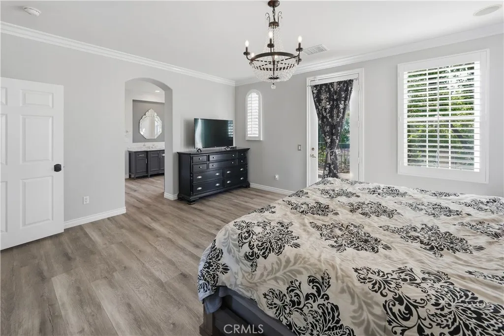 Exquisite Entertainer’s Home located on one of the best Cul-de-Sac streets in the Prestigious Guard Gated Woodlands Community! As you enter this Magnificent home you are in awe with the Architectural Style and Designer’s Touch throughout! This Sophisticated Well-appointed home exemplifies impeccable taste. Luxury Living at its finest! As you enter this Incredible home, you are drawn to Custom Beveled Windows and French Doors leading you to the Courtyard and Entertainer’s Backyard! This Spectacular home Boasts 5 Large Bedrooms (one downstairs), Approx. 3,600 Sq. Ft, Tech Center, Large Primary Suite with Balcony, Large Living Room, Formal Dining Room, Family Room, Loft, Large Upgraded Gourmet Kitchen with High-End Appliances, Quartz Counter Tops & Gorgeous Backsplash & Breakfast Nook overlooking the Breathtaking Backyard. Perfect for any Chef! Large Family Room with Upgraded Stone Hearth Romantic Fireplace. Formal Dining Area with French Doors to the Lush Private Courtyard with Serene Water Feature. As you meander upstairs you are drawn to the Large Loft, Large Primary Suite with Large Balcony and Stunning Mountain Views. Large Luxurious Upgraded Primary Bathroom with Dual Sinks with Walk-in Shower & Separate Tub. Feels like you are in Bellagio. Two Walk-in Closets with Built-ins. Four Large Bedrooms (one w/En-suite & one with deck). Large Laundry Room with Sink and plenty of storage. Features include French Doors, Crown Molding, Custom Beveled Windows, Ceiling Fans, Recessed Lighting, Plantation Shutters, Upgraded Fireplace, Laundry Room & Professionally Painted. Lush Entertainer’s Park-like Backyard with Covered Patio, Custom BBQ with Enchanting Mountain Views. Professionally Hardscaped & Landscaped. Fabulous Large Private Backyard and Courtyard for Entertaining! 2 Car Garage. Woodlands Amenities include, Guard Gated Entry, Recreation Center, Jr. Olympic Pool, Spa, Outdoor Fireplace, BBQs, Tennis Courts, Basketball Courts, Tot Lot and Walking Trails. Close to award winning schools, shopping and easy freeway access. No Mello Roos. Some photos have been virtually staged.