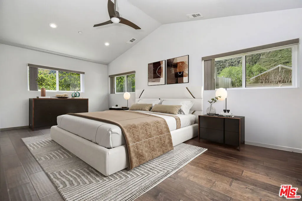 This wonderful ranch style home is back on the market and priced to sell! Perched in the hills of Tujunga and built in 2017 this property has an open-concept with three bedrooms and two bathrooms a retreat like this is a rare find! Stepping inside, you'll be greeted by the warmth of real Oak hardwood floors, which flow effortlessly throughout the home. A modern kitchen, outfitted with sleek appliances and refined finishes, serve as the heart of the home-perfect for both casual mornings and elegant entertaining. The living area is anchored by a real wood-burning fireplace, creating a cozy ambiance for the cooler nights. Beyond the homes impeccable interior, the private gated driveway ensures both security and seclusion, while dedicated RV parking adds to its practicality. Talk about indoor-outdoor living there is direct access through floor to ceiling glass sliders of which lead to a spectacular patio and sprawling back garden, scattered with flowers and a manicured lawn, a true sanctuary backs up to the majestic mountains and features a natural stream, offering a peaceful oasis where nature and comfort coexist in perfect harmony. This home is more than a residence-its an escape, its an experience, and an opportunity to embrace both modern comfort and breathtaking scenery. An absolute gem in superb condition awaits its next chapter, there is so much room to expand, build up or out, plenty of space to put in a swimming pool, barn or even an ADU. All mounted televisions, brand-new propane washer/dryer and refrigerator are generously included in the sale. Some of the pictures are virtually staged.