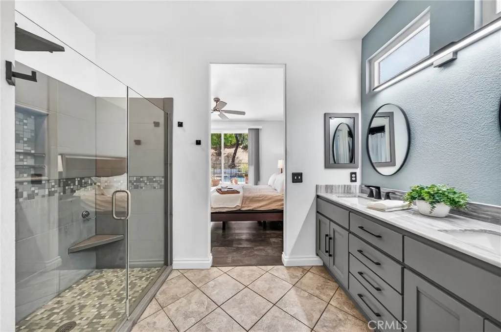 OPEN HOUSE 4/25 11AM-2PM***CORNER LOT + SINGLE STORY + POOL HOME IN HORSETHIEF CANYON RANCH - a combination that is hard to find!*** As soon as you step inside, you’re welcomed into a completely renovated open floor plan designed for both everyday living & entertaining! European flooring flows throughout the home, leading you into the remodeled kitchen featuring; stainless steel appliances, modern grey cabinetry, stunning quartz waterfall countertops & backsplash with a large island that opens to the dining and living areas. The living room is centered around a cozy fireplace with coordinating quartz surround & modern glass touches, creating a warm and inviting focal point. Step outside to where you’ll be spending most of your time! The backyard feels like a desert oasis and is set up perfectly for entertaining! With a covered patio for gatherings & low-maintenance landscaping, the POOL & SPA area sits in its own separate space with a built-in fireplace and seating area...perfect for relaxing and hosting! The primary suite offers direct access to the backyard & feels like its own retreat, complete with a beautifully updated en-suite bathroom with dual vanities, custom granite countertops, complimentary cabintery, modern lighting, a spa-like walk-in shower with tile surrounds & a walk-in closet. Down the hall you’ll find two additional spacious bedrooms, one with walk-in closet, along with the guest bathroom showcasing an updated granite vanity with contrasting cabinetry & a walk-in shower. Additional upgrades include; NEW dual-pane windows, SOLAR to help keep utility costs down, NEW vinyl fencing, NEW furnace & a NEW water heater... giving you peace of mind knowing many of the major updates have already been taken care of! Located within the highly sought-after Horsethief Canyon Ranch, a master-planned community nestled against the Cleveland National Forest, walking distance to k-8 schools offering private security, fitness center, two community pools and spa, tennis courts, clubhouse, exercise trails, and more. Low taxes and low HOA complete this exceptional opportunity. Come experience the lifestyle and value that make Horsethief Canyon Ranch such a desirable place to call home!