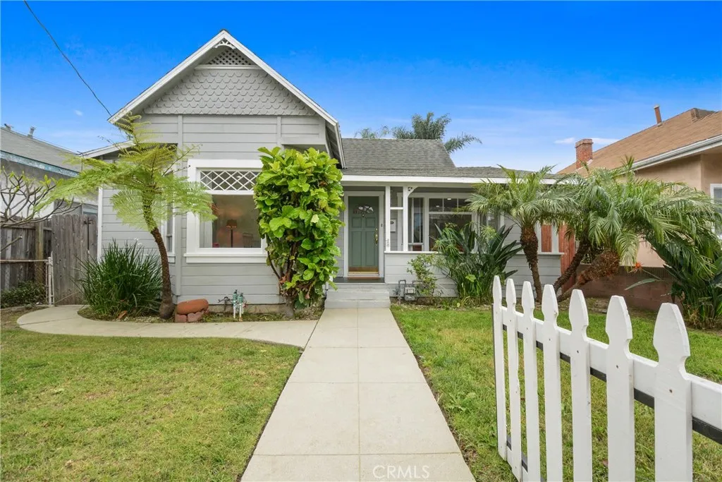 Welcome home to a timeless treasure filled with charm, character, and over a century of history. Built in 1896, this inviting 2-bedroom, 1-bathroom residence blends classic details with thoughtful updates. Step through the gate to the covered front porch, perfect for a porch swing or cozy seating. Inside, the inviting living room offers a light-filled atmosphere with abundant windows and views of the front yard. Recessed lighting and a mix of tile and engineered hardwood flooring add style and functionality throughout. The home features a comfortable layout with two bedrooms, including a front bedroom with a soaring ceiling and a second bedroom offering added privacy. Both include spacious closets. A transition space leads to a remodeled full bathroom, private interior laundry room, and backyard access. Forced air heating and air conditioning provide year-round comfort. The remodeled bathroom features recessed lighting, a bidet toilet, and a separate bathtub and walk-in shower. The updated kitchen includes quartz countertops, soft-close cabinetry, recessed lighting, stainless steel appliances (stove, refrigerator, vent hood), and an integrated dishwasher for a seamless, built-in look. Situated on a fully gated lot, the property offers a serene front yard with mature trees and an expansive rear yard with concrete and grass areas, ideal for outdoor use, entertaining, or storage. Rear alley access includes a manual gate for RV parking or up to four additional spaces, plus a detached two-car garage with automatic opener. Located just minutes from the highly anticipated West Harbor waterfront development, this home is perfectly positioned to benefit from the exciting transformation of the San Pedro waterfront. West Harbor will bring new dining, entertainment, retail, and open space to the area, further enhancing the vibrant coastal lifestyle that makes San Pedro such a special place to call home.