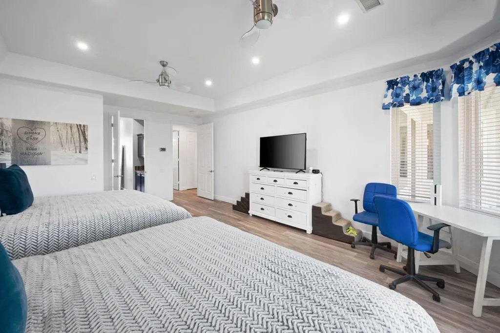 Experience the epitome of waterfront living at Lake La Quinta. Nestled on a picturesque corner lot by a stunning 25-acre lake, this exquisite home offers breathtaking views of both the tranquil water and the majestic Santa Rosa Mountains. Spanning over 3,000 square feet, this elegant residence includes 5 spacious bedrooms and 3.5 baths, alongside a recently upgraded chef's kitchen. Step into your private backyard oasis, complete with a luxurious pebble tech pool and spa. The home was recently upgraded with over $300k in repairs and upgrades including a new AC, solar panels, pool equipment, floors, baseboards, laundry room, and pergola. Additionally, enjoy direct lake access via your own private dock. Lake La Quinta provides an exclusive community atmosphere, with a 24-hour guard-gated entrance and an array of amenities including fishing, a 3-acre park, tennis courts, a community pool, barbecue facilities, and boat docks and launch area.