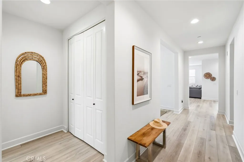 Welcome to 5024 Rexton Drive, nestled in the tranquil and highly desirable area of Camarillo, California. Located within The Grove, an exclusive gated community designed for residents 55 and older, this home blends refined comfort with modern convenience in a serene setting. This beautifully appointed Pomelo Model, Residence 2, offers approximately 1,519 square feet of living space, featuring two spacious bedrooms, two-and-a-half bathrooms, and a versatile den or office ideal for work or relaxation. Numerous upgrades were professionally selected, adding both style and long-term value. The open-concept floor plan is enhanced by luxury vinyl wood plank flooring throughout, providing durability with a warm, sophisticated aesthetic. Dual-pane windows and classic white wood blinds fill the home with natural light while maintaining privacy. The kitchen stands out with upgraded white shaker cabinetry with soft-close doors and drawers, granite countertops, stainless steel appliances, and recessed lighting—creating an inviting space for cooking and entertaining. The living area flows seamlessly to a covered patio with a ceiling fan, perfect for outdoor enjoyment. What truly sets this home apart is its rare lot placement. The side opens to a landscaped common area with guest parking, a feature not commonly found in the community. Additionally, the property offers a double-width entry patio and expanded rear walkway, providing more outdoor space and accessibility than most homes. The paver system, landscaping, and irrigation were custom-designed, creating a polished outdoor environment ideal for entertaining or quiet enjoyment. Energy efficiency is thoughtfully incorporated with a whole-house fan that takes advantage of Camarillo’s coastal breezes, reducing the need for air conditioning and lowering energy costs. Additional features include an attached two-car garage with a Level 2 EV charger, in-unit washer and dryer, and included TVs and WiFi. Residents of The Grove enjoy resort-style amenities including a pool and spa, fitness center, pickleball courts, mini golf, dog parks, and private walking trails. 5024 Rexton Drive offers a rare combination of upgrades, unique lot advantages, and energy-conscious design in one of Camarillo’s most sought-after communities.