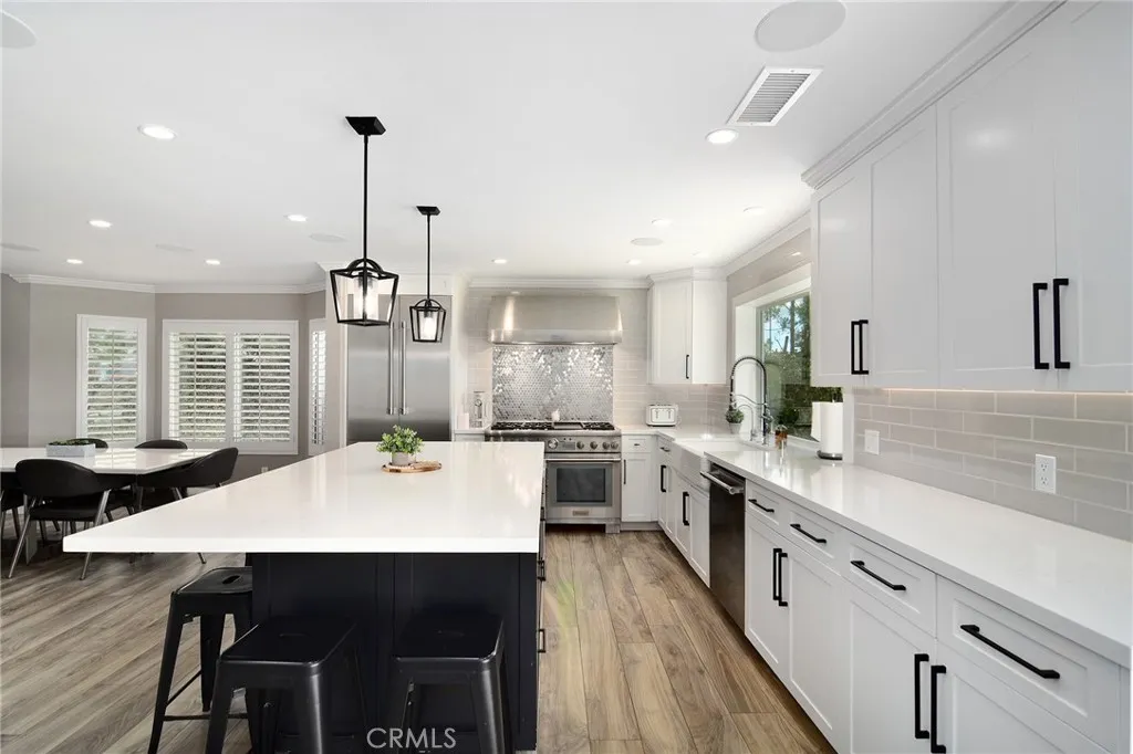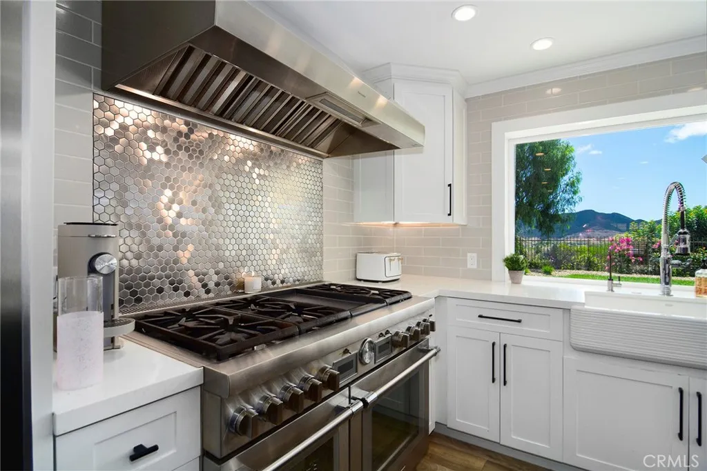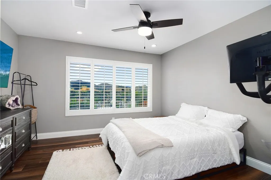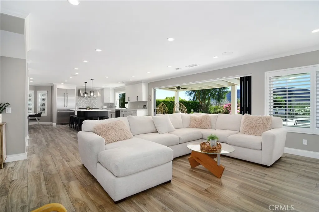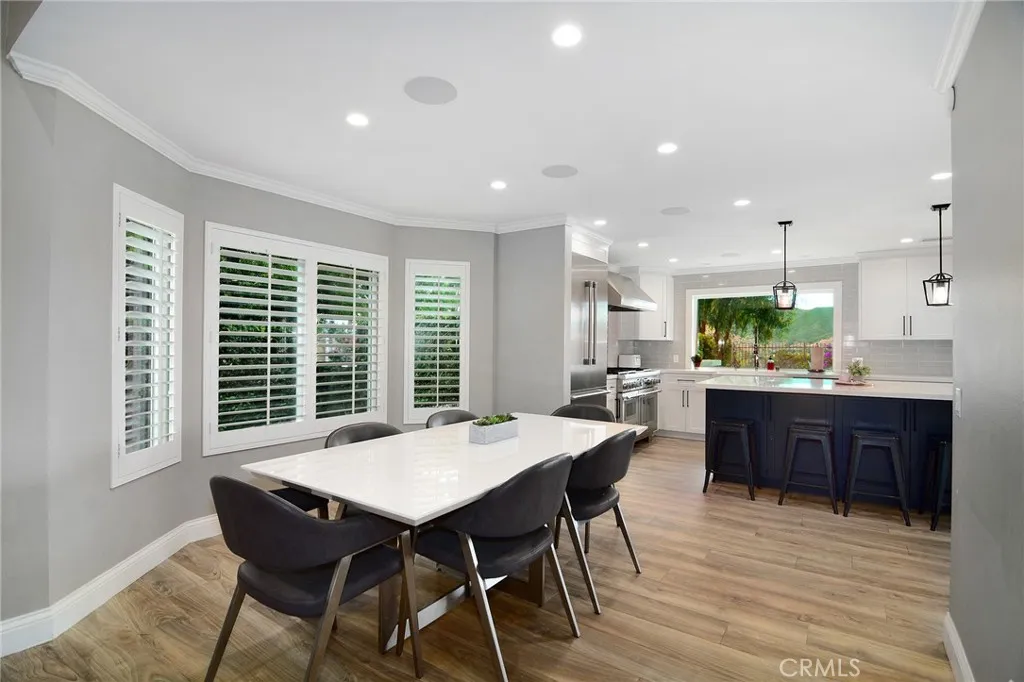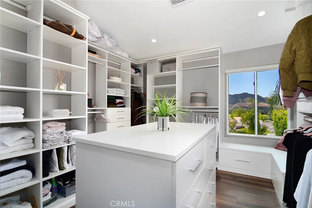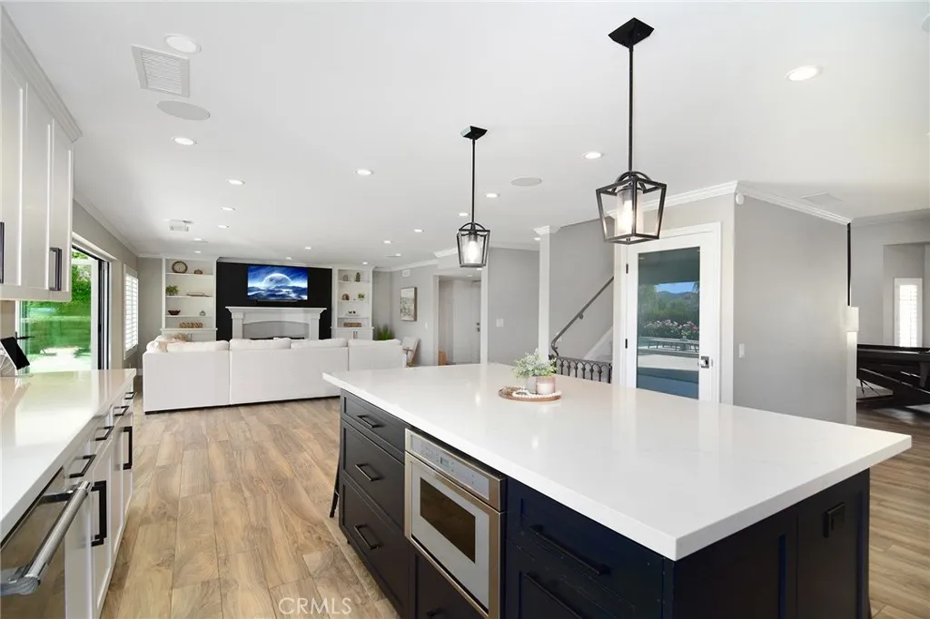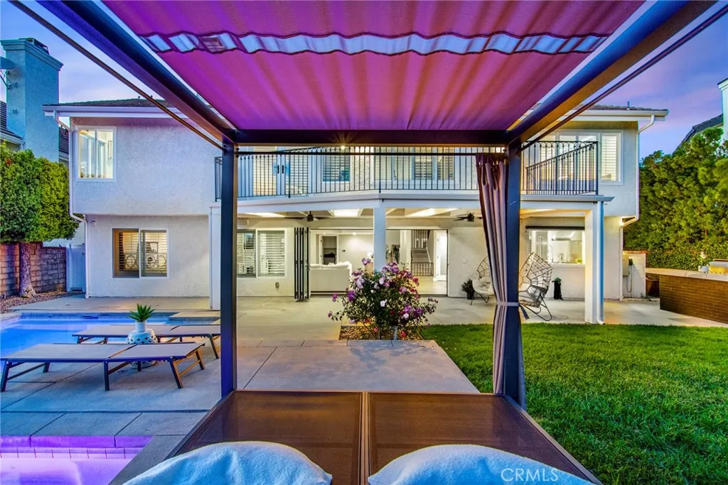 Located in Morrison South Meadows, this 4-bedroom, 3-bath home offers approximately 3,141 sq ft and captures sweeping, direct views of Ladyface Mountain and the Santa Monica Mountains. Set on a quiet residential street, the home is designed to maximize natural light, privacy, and a seamless indoor-outdoor lifestyle. Extensively updated in 2020, improvements include copper plumbing, updated electrical, newer roof, HVAC system, garage door, EV charger, roof-mounted fire sprinklers, and cement siding at the front elevation. The interior is designed for both everyday living and entertaining, featuring an open-concept layout that connects the kitchen, dining, and living spaces. The remodeled kitchen is finished with a premium Thermador appliance suite and quality materials throughout. A main-level bedroom and full bath offer flexibility for guests, office, or multigenerational living. The primary suite is positioned to capture sunset and mountain views and includes a private balcony and a large, finished walk-in closet with its own views, creating a true retreat experience. Outdoor spaces are built for entertaining and relaxation, with a redesigned pool, multiple seating and dining areas, and open sightlines to the surrounding hills—blending indoor and outdoor living. Additional features include a 2-car garage with direct access, custom cabinetry, epoxy flooring, and a storage loft. Located near Morrison Park, Chumash Park, Santa Monica Mountains trailheads, shopping, dining, and convenient access to the 101 freeway.