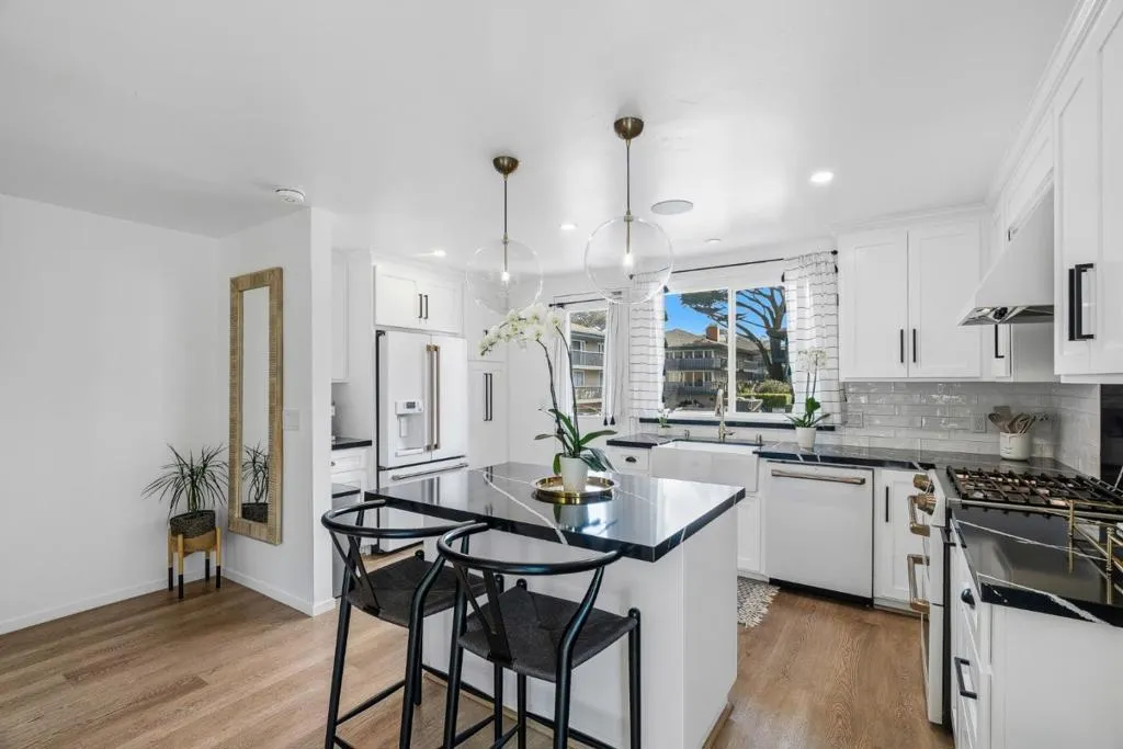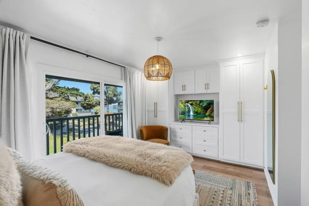Photos barely do this beautiful condo justice! This is the opportunity to enjoy oceanfront living in one of Monterey's most tranquil areas. Surrounded by well-maintained grounds, coastal cypress trees, and the breathtaking scenery of Monterey Bay, this multi-level residence embodies relaxed seaside comfort. Experience the warm welcome of natural light flooding the interior through large windows and sliding doors, inviting in refreshing ocean breezes and the soothing sounds of waves. The newly redesigned kitchen flows smoothly into the inviting dining area, ideal for memorable gatherings and entertaining guests. Meanwhile, the cozy living room fireplace creates a perfect setting for intimate, relaxing evenings. Multiple balconies offer peaceful spots to relax, look out at the ocean, and enjoy the coastal air. After a day at the beach, unwind in the oversized soaking tub before falling asleep to the sound of the ocean. The primary bath features a Toto bidet, built-in towel warmer, and vanity mirrors with integrated lighting, custom herringbone tile, and thick, custom glass doors. Just steps away, the coastal trail guides you to the wharf and extends to Pacific Grove, providing easy access to charming restaurants, lively festivals, lovely walks, and ocean bike rides.