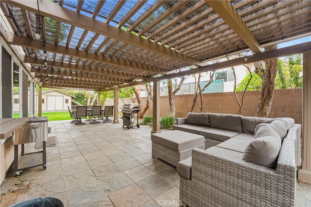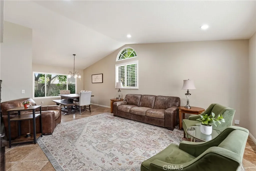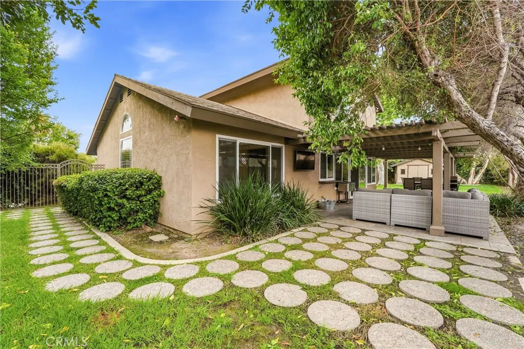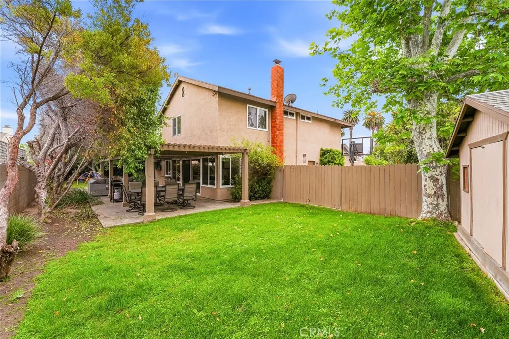 Welcome to 1513 Glenn Circle — a stunning two-story home on a quiet cul-de-sac in Placentia, "The All-American City." Exceptional curb appeal opens to a dramatic foyer with soaring vaulted ceilings, rich hardwood floors, and an elegant wrought iron staircase. The formal living and dining rooms are flooded with natural light through a striking arched window and plantation shutters. The kitchen features rich wood cabinetry, granite countertops, stainless steel appliances, and a gas range — opening seamlessly into the family room with a cozy fireplace and direct backyard access. Upstairs, the primary suite offers a ceiling fan and an en-suite bath with dual vanity and a tiled walk-in shower. Secondary bedrooms are generously sized, one with French doors, all with ceiling fans and mirrored closets. The HUGE park-like backyard is a true entertainer's dream — a covered pergola with mounted TV, multiple seating and dining areas, lush lawn with stepping stone path, a full basketball court, and an adorable playhouse the kids will love. This home has been thoughtfully upgraded throughout: brand new carpet in all bedrooms, fresh interior and exterior paint, dual-pane windows, puck lighting, updated electrical panel, new water shutoff valve, and Roof Max treatment for long-term peace of mind. Located in the award-winning Placentia-Yorba Linda Unified School District with easy freeway access, shopping, and dining nearby. NO Mello-Roos and NO HOA — this one truly checks every box!