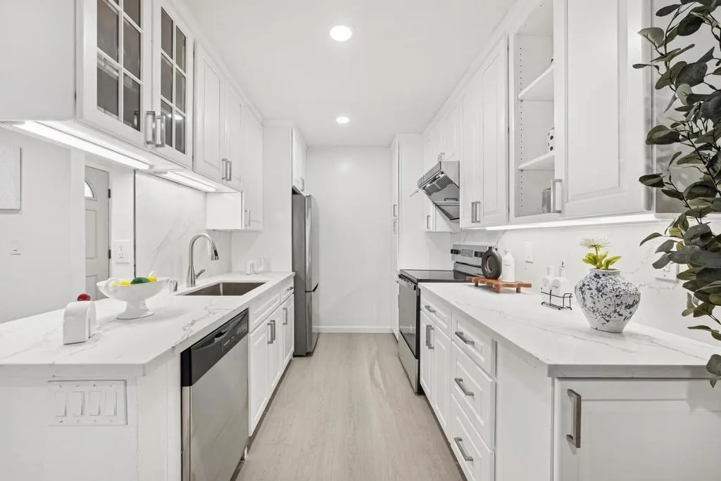 Stunning, fully remodeled townhouse featuring 4 bedrooms and 3 full bathrooms in a highly desirable and convenient location. This bright, sun-filled home showcases stylish contemporary finishes throughout, including a brand-new kitchen with all-new appliances and beautifully upgraded bathrooms. Every detail has been thoughtfully curated to create a fresh, elegant, move-in ready living experience. Upstairs, you'll find generously sized bedrooms, including a comfortable primary suite with ample closet space and a private patio, an ideal retreat for morning coffee or relaxing evenings. Enjoy an east-facing front entrance, a welcoming front yard, and a private backyard that opens to lush greenery. The community features abundant greenbelt areas, creating a serene, park-like setting. With green grass just outside your backyard, this home is especially pet- and kid-friendly. Situated in a well-maintained community, this home offers the perfect balance of comfort and practicality. Prime location near top-rated schools, major high-tech employers, shopping, and dining, with easy access to key commute routes. A rare opportunity to own a beautifully updated home that truly has it all: style, space, and convenience. Don't miss it!