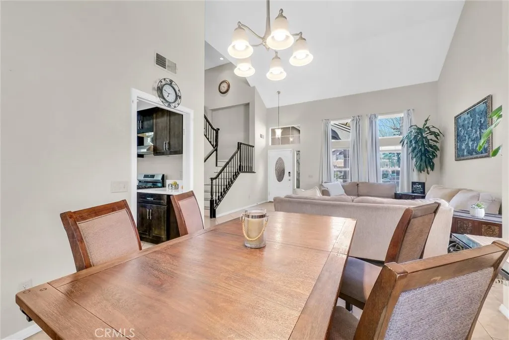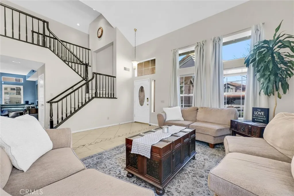 Welcome to this two-story home located in a desirable Highland neighborhood. Vaulted ceilings create an open, airy feel as you enter the spacious living areas, perfect for both everyday living and entertaining. Solar panels on this Home for energy efficiency. The remodeled kitchen offers updated finishes, ample cabinetry, and generous counter space, flowing seamlessly into the dining and family areas for a functional layout. The inviting family room features a cozy fireplace, perfect for relaxing and unwinding. Upstairs, the primary bedroom is a true retreat with a remodeled Primary bathroom. Three additional bedrooms are well-sized and filled with natural light. Step outside to a peaceful backyard adorned with lush landscaping, mature lemon and orange trees, and a charming outdoor patio, creating a serene setting for relaxing or hosting gatherings. Additional highlights include indoor laundry, an attached 3-car garage conveniently located near the 210 Freeway, with easy access to schools, shopping, and dining. A wonderful opportunity to own a spacious, move-in ready home in the heart of Highland!