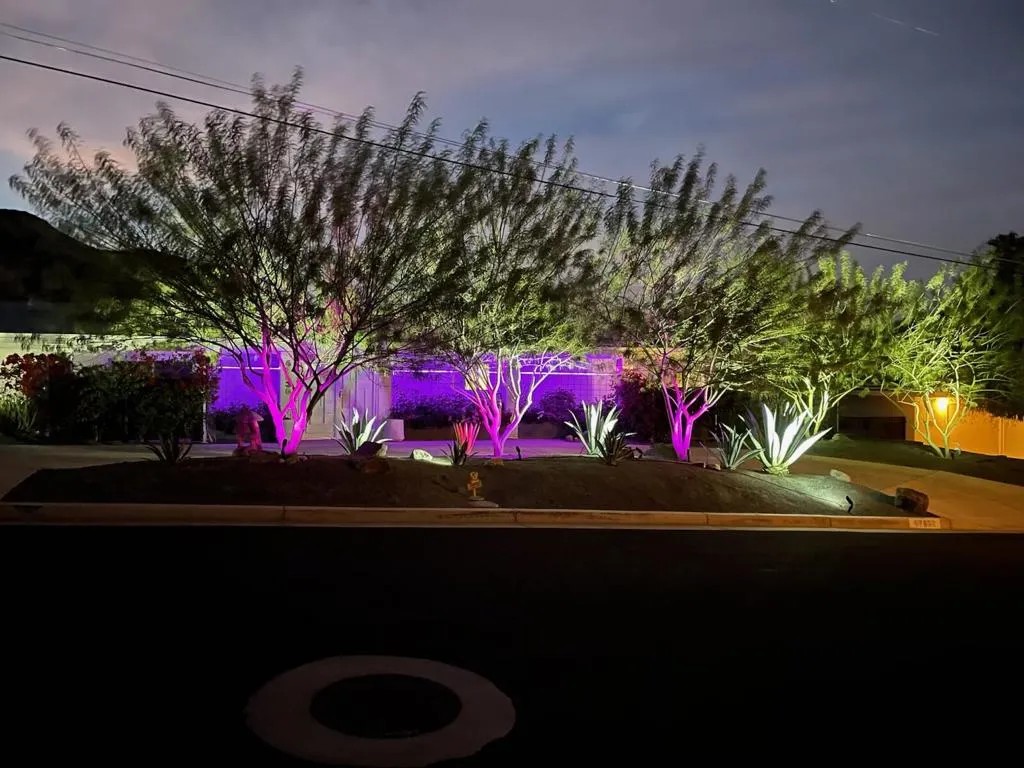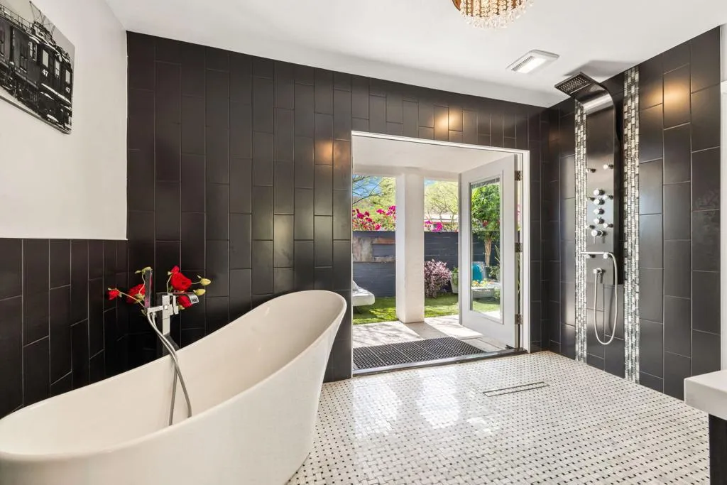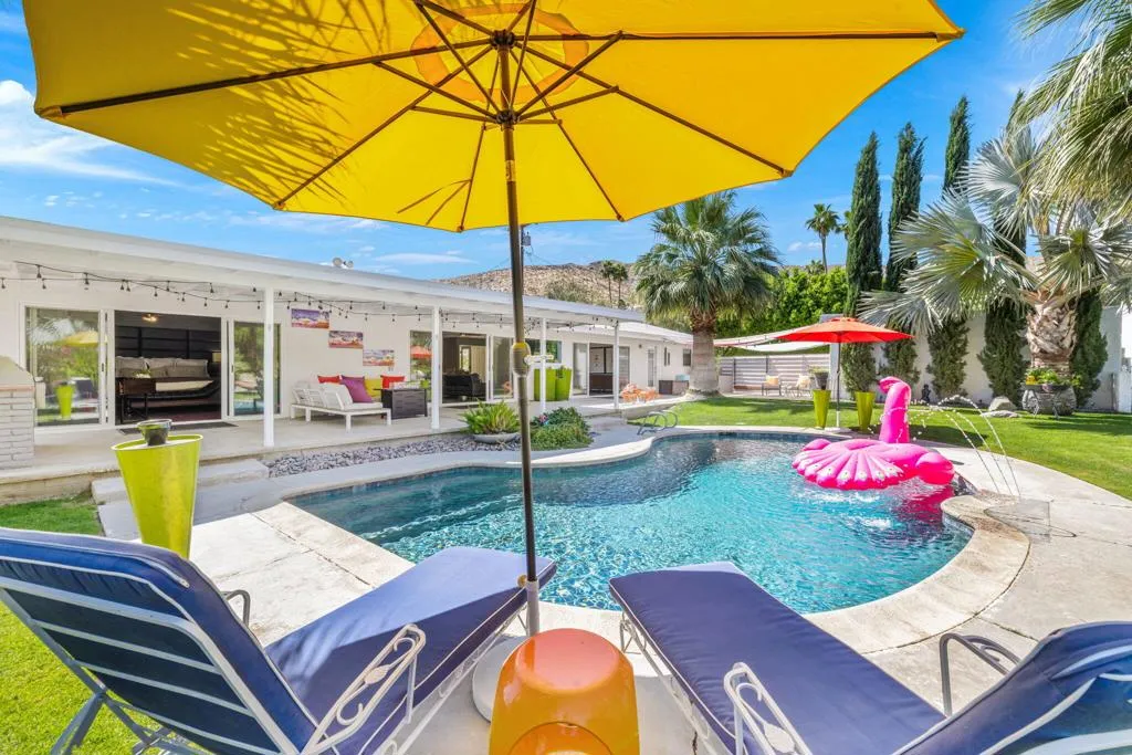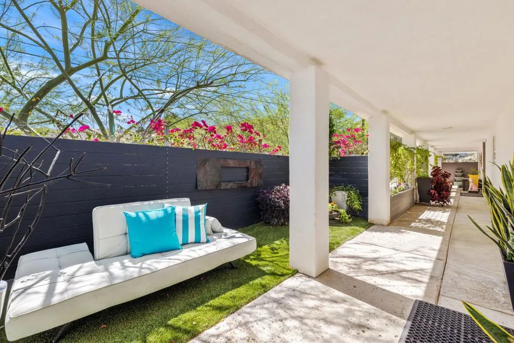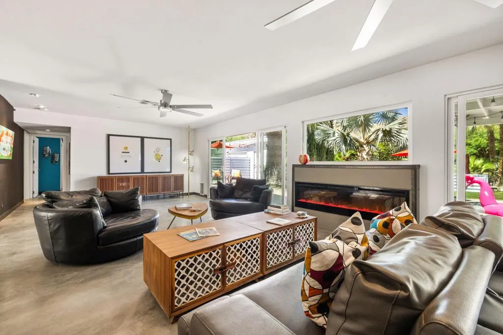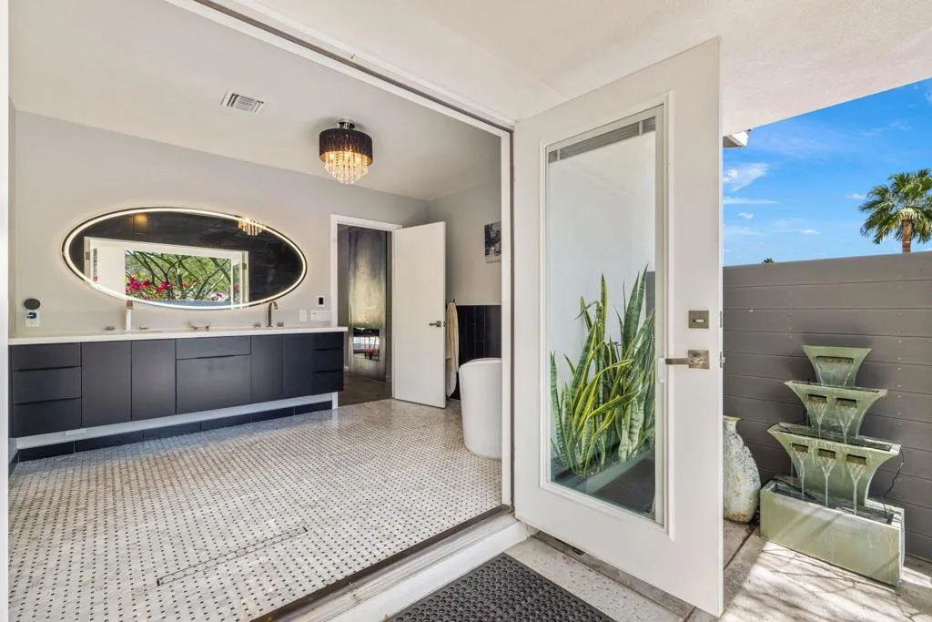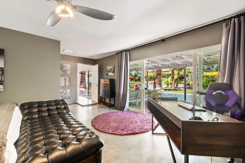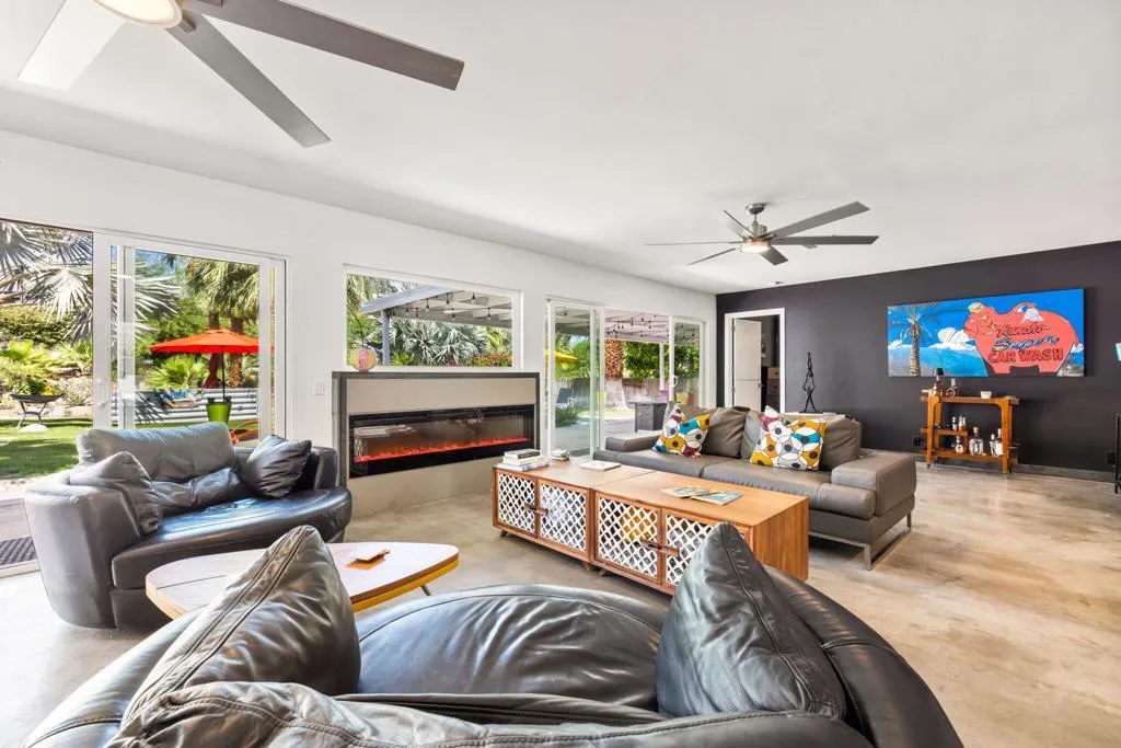 Welcome to The Cove Garden Home, a private retreat in the highly sought-after Upper Cathedral City Cove, where thoughtful design meets effortless indoor-outdoor living.A rare dual-suite layout offers both a spacious primary suite and a well-appointed junior suite, each with private access to a south-facing covered veranda. The primary suite also connects directly to the pool, creating a seamless indoor-outdoor experience. The backyard is designed for both relaxation and entertaining, featuring a covered BBQ terrace, multiple seating areas, color-changing landscape lighting, and a sculptural focal point. A third bathroom with direct outdoor access serves as a convenient pool bath. Inside, the great room fireplace anchors the living space, complemented by a second fireplace in the primary suite. A concealed television hidden behind sliding artwork adds a unique design element, while a large walk-in pantry and abundant storage enhance everyday functionality.Additional highlights include a climate-controlled garage, and versatile climate-controlled flex spaces ideal for a studio, workshop, or wellness retreat. Located near Rancho Mirage and Palm Springs, dining, and shopping.