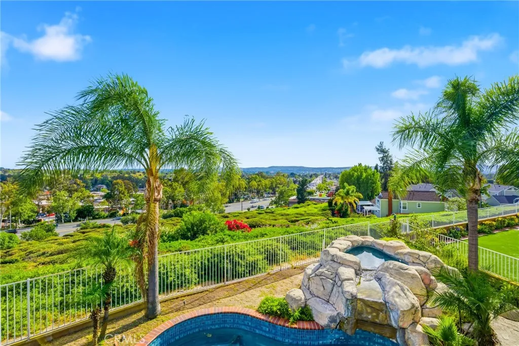 Welcome to your dream home at 25856 Windsong in Lake Forest, a truly one-of-a-kind two-story residence tucked away on a quiet cul-de-sac with breathtaking valley views, exceptional privacy, and abundant natural light throughout. This beautifully maintained home offers 4 bedrooms and 3 fully remodeled bathrooms across 2,746 square feet, situated on an expansive 8,800 square-foot pie-shaped lot. The bright and airy interior features vaulted ceilings, dual-pane windows and sliders, a formal living and dining area with bay windows, and a remodeled kitchen with a breakfast nook and outstanding views, seamlessly connecting to a separate family room with direct access to the backyard. The main level includes a downstairs bedroom, a three-quarter bathroom with walk-in shower, a dedicated laundry room with side-by-side washer and dryer, and generous garage storage. Upstairs, the primary suite impresses with vaulted ceilings, incredible light, a spacious bathroom with dual sinks, walk-in shower, separate soaking tub, and a large walk-in closet, along with two additional bedrooms and a remodeled hallway bathroom. The backyard is a private oasis featuring a large pool, spa/Jacuzzi, built-in barbecue area, and expansive grass space—perfect for entertaining or relaxing—while additional highlights include a whole house fan, solar panels to help keep energy costs down, a quiet setting away from the freeway, and a move-in-ready condition that is rarely found in a home offering this combination of views, lot size, and floor plan.