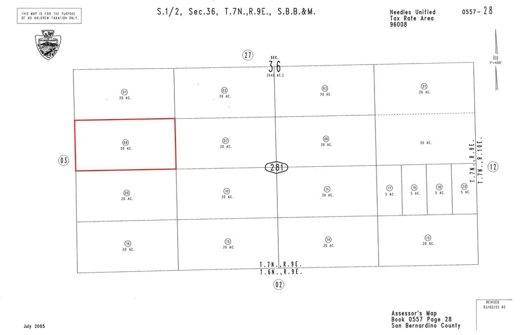 Twenty acres of flat, Residential Vacant Land in the heart of the Mojave Desert near Amboy, San Bernardino County — an open-canvas parcel offering wide desert views and direct proximity to Historic Route 66 and the National Trails Highway. The level terrain with minimal slope makes this an accessible land banking opportunity without the grading challenges common to desert parcels. The site currently has no utilities on-site or nearby, making it well-suited for buyers pursuing off-grid development, solar or wind energy setups, or long-term land investment in one of Southern California's most iconic desert corridors. Amboy sits along a historically significant travel route and draws consistent interest from outdoor enthusiasts, overlanders, and Mojave Desert explorers. Buyers are encouraged to perform their own due diligence depending on their intended use with the property. With 20 acres at $22,000 — just $1,100 per acre — this represents an entry-level position in San Bernardino County desert land. APN: 0557-281-08-0000. Contact us today to request parcel maps and GPS coordinates.