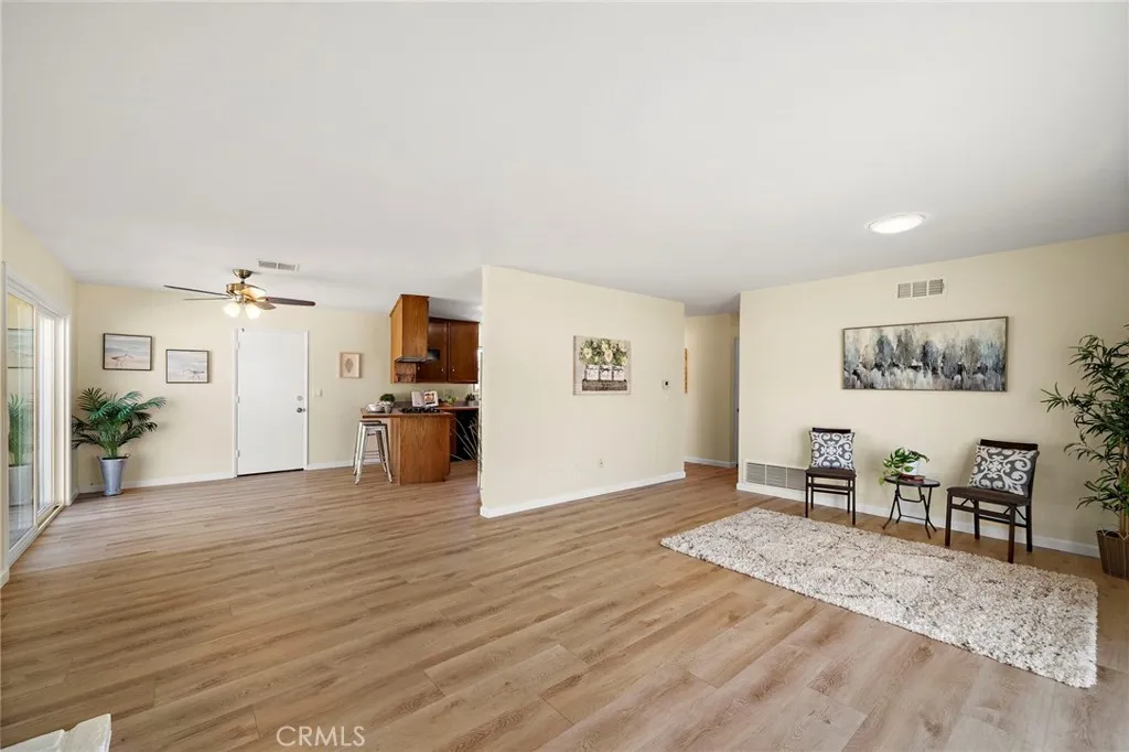 Absolutely charming and beautifully upgraded, this clean turnkey single-story home is nestled at the end of a cul-de-sac in the highly sought-after Old Goldenwest Estates neighborhood, an incredible opportunity for first-time buyers or anyone looking to create their dream home in a superb family-friendly neighborhood. Boasting 3 bedrooms, 2 bathrooms, and spanning 1,272 square feet, this inviting residence features luxury wide-plank vinyl flooring throughout, dual pane windows and sliders, smooth ceilings, ceiling fans, fresh interior paint, and mirrored closet doors, while both bathrooms have been stylishly remodeled with designer surrounds, quartz countertops, new vanities, and updated fixtures. The home offers wonderful curb appeal with a lush front lawn, colorful flowering gardens, a wide sweeping driveway, and a newer roof, and inside you’ll find a light and bright open floorplan with a spacious living room highlighted by a white brick fireplace and a solatube skylight that fills the space with natural light. The living room flows seamlessly into the dining area with slider access to the side yard and opens to the adorable kitchen featuring a breakfast bar, gray countertops, gas cooktop, oven, dishwasher, refrigerator, and abundant natural wood cabinetry including a large pantry. All bedrooms are generously sized with ceiling fans and mirrored closets, and the primary suite includes an ensuite bathroom with a beautifully updated walk-in shower. The private backyard is enclosed with block walls topped with white vinyl fencing for added privacy and offers a blank canvas to design your ideal outdoor retreat, whether it’s a pool, covered patio, BBQ area, garden, or lawn for entertaining and relaxation. Additional highlights include direct access to the two-car garage with built-in storage. Ideally located near parks, top-rated schools, shopping, dining, easy freeway access, and just a short drive to the beach & Bella Terra! This home combines comfort, value, and location. Don’t miss this fantastic opportunity!