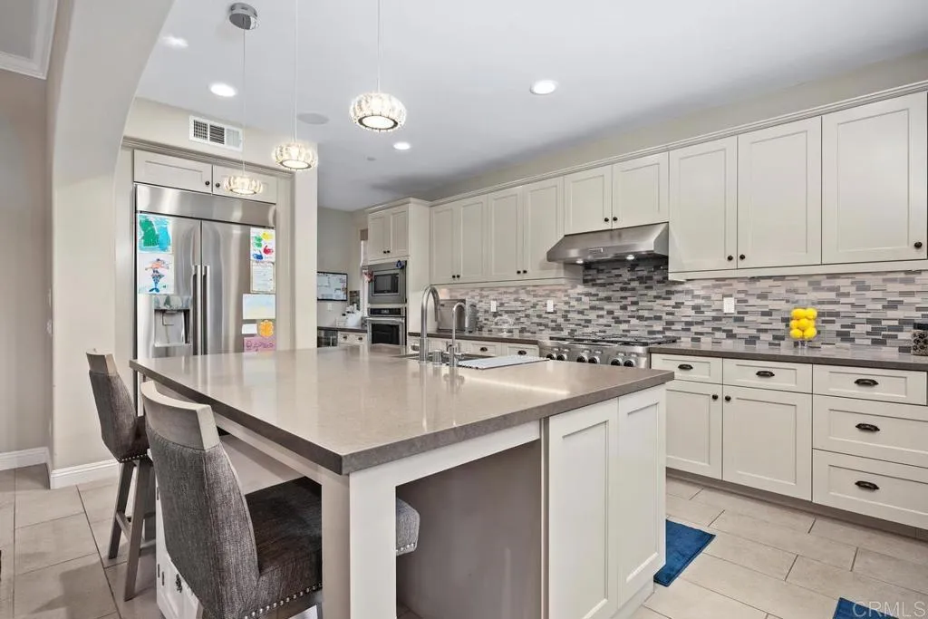 Welcome home to 3642 Glen Avenue. Step into a private courtyard with a calm and inviting feel, offering access to both the main residence and a detached casita style suite. This separate space features a spacious bedroom and full bathroom, providing flexibility for guests, extended family, or a private office. The main home is thoughtfully designed for Southern California indoor outdoor living. Expansive folding glass doors open to a beautifully landscaped backyard complete with a custom built in BBQ, outdoor fireplace, generous seating areas, and plenty of space for entertaining. Inside, the open concept layout highlights a chef inspired kitchen with an oversized center island, walk in pantry, and a clean, modern design. The family room is centered around a cozy fireplace and connects effortlessly to both the courtyard and backyard, creating a seamless flow throughout the home. Upstairs, a grand staircase leads to a well designed floor plan anchored by a versatile loft. Each bedroom includes its own bathroom and is positioned to offer privacy and comfort. Residents enjoy access to resort style amenities including poolside cabanas, a separate children’s pool, pickleball courts, playgrounds, BBQ areas, and scenic walking trails. Located within the highly sought after Carlsbad Unified School District, this home offers an exceptional combination of comfort, style, and convenience.