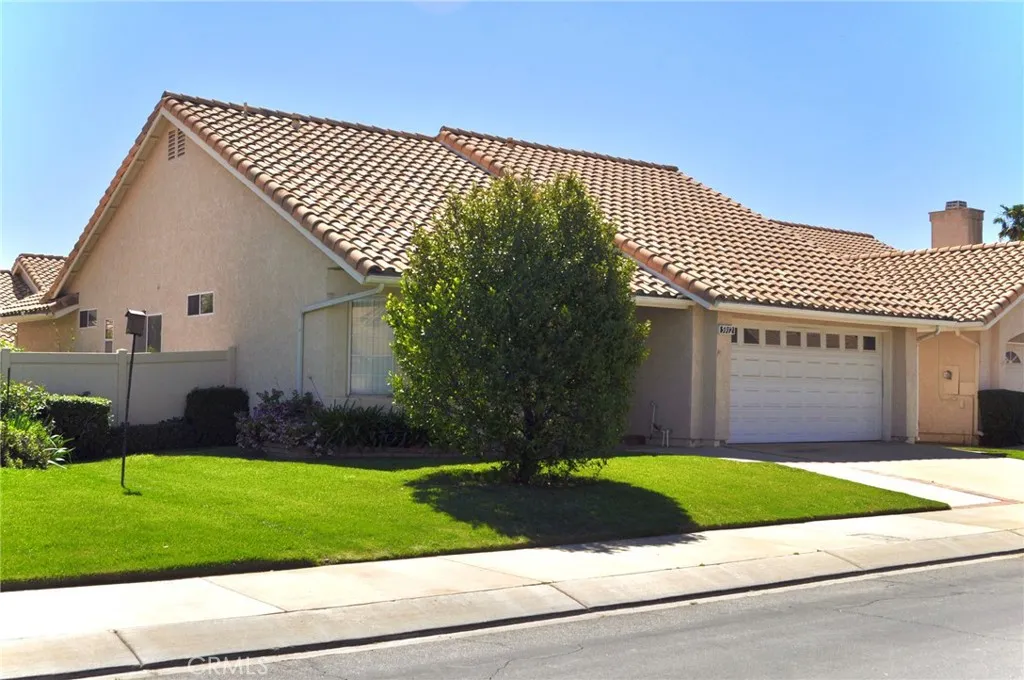 Discover the perfect blend of comfort, style, and resort-style living in this impeccably maintained 3-bedroom, 2-bath gem nestled within the vibrant Sun Lakes Country Club, a premier 55+ gated community! Step inside this inviting interior featuring a contemporary paint palette that bathes every room in natural light. The updated A/C system ensures year-round comfort, while the expansive living room beckons with a modern ceiling fan and a charming fireplace, ideal for cozy evenings as cooler desert nights approach. The open dining area flows effortlessly to a generous sliding glass door that opens onto your private outdoor sanctuary: a beautifully landscaped backyard oasis featuring a covered patio perfect for gatherings, casual barbecues, or simply savoring the California sunsets. Enclosed by sleek vinyl fencing, this low-maintenance retreat offers both privacy and practicality. Retreat to the spacious primary suite, where the plantation shutters frame the backyard views, a ceiling fan keeps things cool, and the ensuite bath delights with dual sinks for effortless mornings. A versatile third bedroom currently serves as a delightful bonus room/flex space—complete with potential for a designated closet— ready to transform back into a traditional bedroom, home office, craft haven, or hobby retreat, whatever suits your lifestyle. Move-in ready and waiting for you to unpack and start living the dream! This community features a centrally located clubhouse, where endless activities await: live entertainment on Friday and Saturday nights, dazzling ballroom events, lively happy hours in the lounge, delicious dining at the Sand wedge (with its sports-bar vibe), and elegant fine-dining options on select evenings. Embrace an active, engaging retirement with three gyms, sparkling pools and spas, libraries, multiple clubhouses, and an incredible array of over 60 social clubs. Tee off on two golf courses, rally on the tennis, pop tennis, and pickleball courts, or dive into bocce, fitness classes, and more—it's all here in this resort-inspired haven! Conveniently close to restaurants, medical facilities, shopping, a movie theater, quick access to the I-10 freeway, Morongo Casino, outlet stores, and endless adventures. HOA dues cover internet and cable, adding even more value to this turnkey treasure. Don't miss your chance to claim this slice of Sun Lakes paradise—schedule your showing today while it's still available!