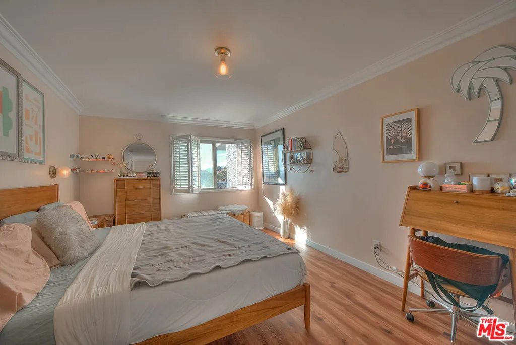 Perched in the heart of Silver Lake, this bright and open luxury condo showcases sweeping panoramic views from its private balcony spanning south, west, and north capturing rooftop city scapes, glowing sunsets over the hills, sparkling evening lights, the iconic Hollywood Sign, and passing jetliners gliding across the skyline. Above, a stunning rooftop deck elevates the experience even further, offering a dramatic, head-on view of the Downtown skyline alongside captivating jetliner vistas perfect for entertaining or unwinding under the city lights.Inside, the thoughtfully designed open floor plan is finished with rich hardwood-style flooring throughout the living, dining, and bedroom spaces. The inviting living area features a cozy gas fireplace, while the adjoining dining space flows seamlessly with a convenient kitchen pass-through. The generously sized bedroom includes a large closet and is complemented by a tastefully updated bathroom. A newer HVAC system adds modern comfort and energy efficiency year-round.Additional highlights include two full (non-tandem) parking spaces and ample storage. Residents enjoy access to a range of amenities, including a pool, recreation room, elevator, secure entry, trash chutes, and community laundry. HOA dues cover basic cable, internet/Wi-Fi, earthquake insurance, water, and gas. Ideally located between Sunset Boulevard and the Silver Lake Reservoir, this home offers close proximity to some of the neighborhood's best dining, shopping, and lifestyle destinations.