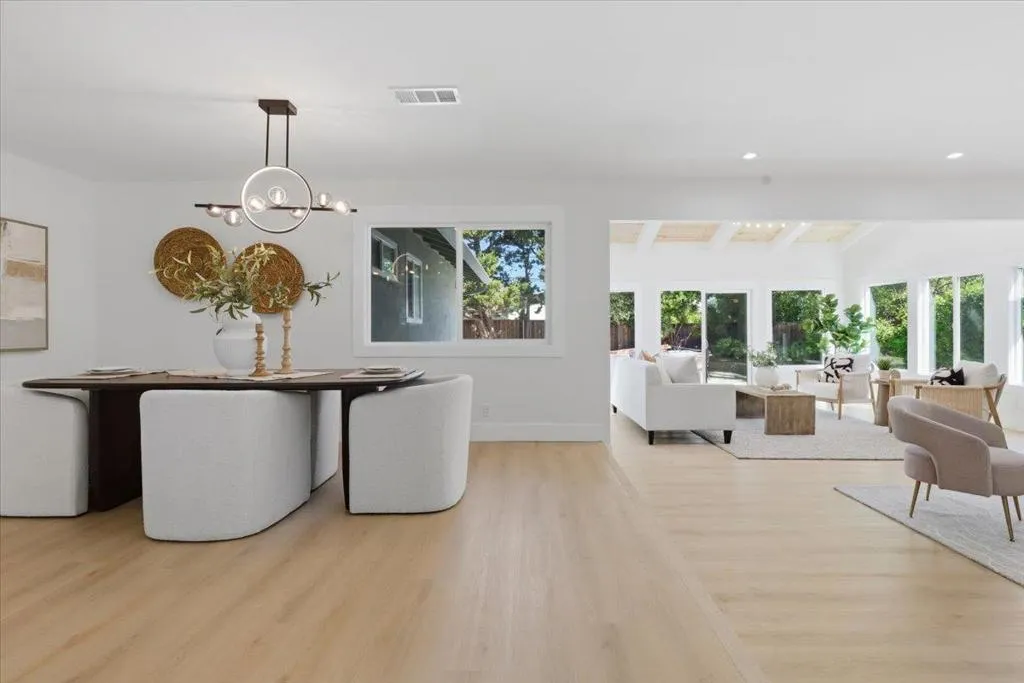 Set in a desirable Cambrian neighborhood, this single-story residence stands out with thoughtfully permitted enhancements and is executed with precision throughout. Offering 4 bedrooms and 2 bathrooms, the home delivers a refined balance of modern minimalism and intentional design. A Japanese-inspired landscape creates a private, tranquil setting, while the sage-toned exterior introduces a calm, elevated presence from the moment you arrive. Inside, exposed beams add architectural warmth, anchored by a statement fireplace that defines the main living space. The home opens seamlessly into a reimagined open-concept layout, designed for both daily living and effortless entertaining. New appliances complement the clean, modern kitchen, where form and function align to create a natural gathering point within the home. Recent improvements include a new HVAC system, providing year-round comfort and efficiency. Positioned within walking distance to nearby parks, the property offers a rare blend of design, location, and livability in an established community. A composed and distinctive offering crafted with intention, and truly one of one.