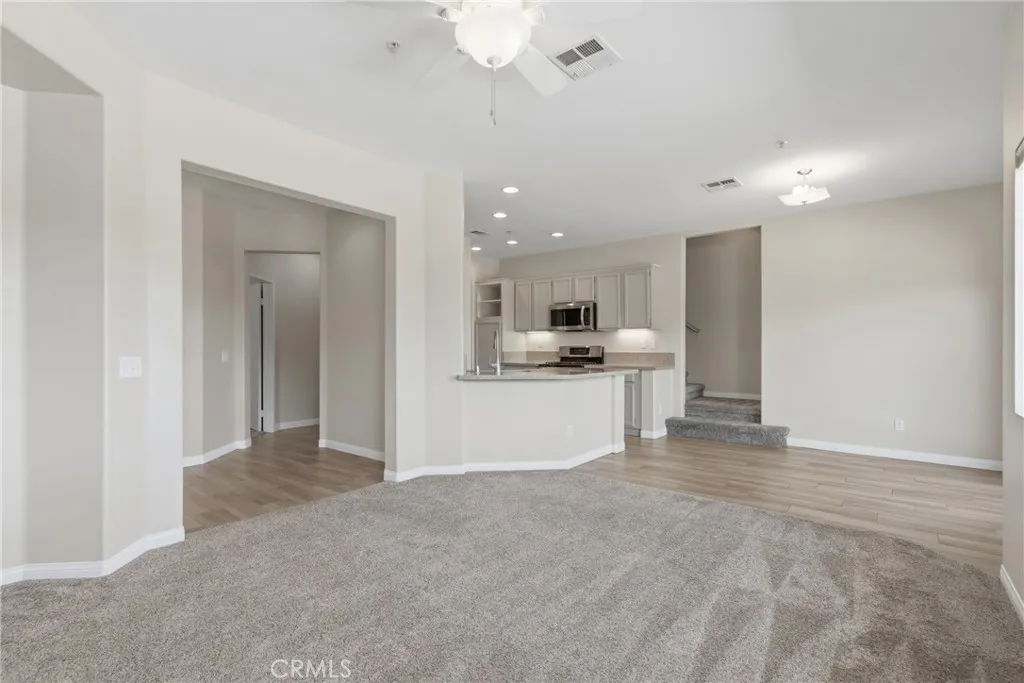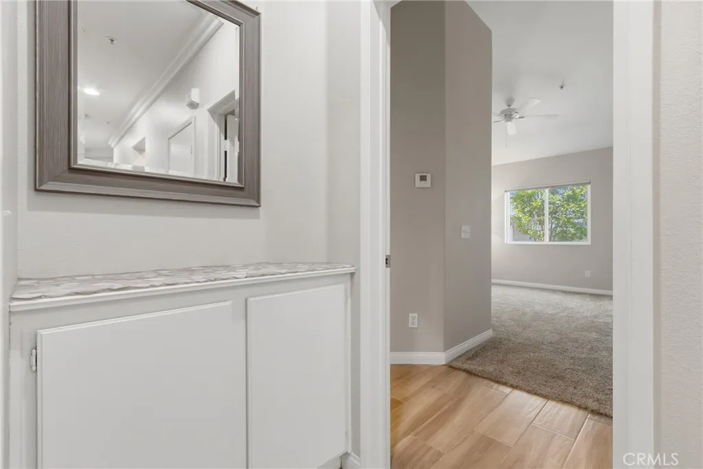 Welcome to a truly rare opportunity in the heart of Temecula. This beautifully upgraded downstairs condo with a private backyard offers a unique blend of comfort, flexibility, and peaceful outdoor living that’s hard to find. Located within a secure gated community, this home features 2 bedrooms and 2 bathrooms, along with a spacious upstairs loft complete with a walk-in closet ideal for a potential 3rd bedroom, home office, or bonus living space. Thoughtfully updated in neutral tones, the home is warm, inviting, and ready for you to make it your own. Wood-look tile flooring and plush carpet run throughout, creating a seamless and stylish feel. The kitchen is both functional and welcoming, featuring Silestone quartz countertops, off-white cabinetry, included refrigerator, and a dining area that opens to the backyard through a sliding glass door perfect for indoor-outdoor living. The adjacent family room offers a cozy fireplace and large windows that bring in natural light and serene backyard views. Tucked toward the back of the home for added privacy, the oversized primary suite features a walk-in closet, ceiling fan, and a beautifully remodeled bathroom with dual sinks and a custom tile shower. A secondary bedroom and full bathroom are also conveniently located on the main level, along with an indoor laundry room complete with storage-washer and dryer included. Upstairs, the expansive loft provides additional flexibility with its own walk-in closet and ceiling fan, along with beautiful mountain views. Whether used as a guest space, office, or converted into a third bedroom, it adds incredible versatility to the home. What truly sets this property apart is the oversized private backyard - a rare find for a condo. Enjoy fresh sod, pomegranate and plum trees, a vinyl fence, and newly painted concrete, all backing directly to Temecula Creek. This peaceful, scenic setting is perfect for morning coffee, relaxing evenings, or entertaining guests. The attached 2-car garage is complete with epoxy flooring, insulated doors, and built-in storage cabinets. Situated in the highly sought after Auberry Place community, residents enjoy beautifully maintained grounds along with amenities including a pool, spa, and tot lot. Conveniently located near top-rated schools, Temecula Wine Country, shopping, dining, and just minutes from the 15 Freeway this home truly offers the best of location and lifestyle.