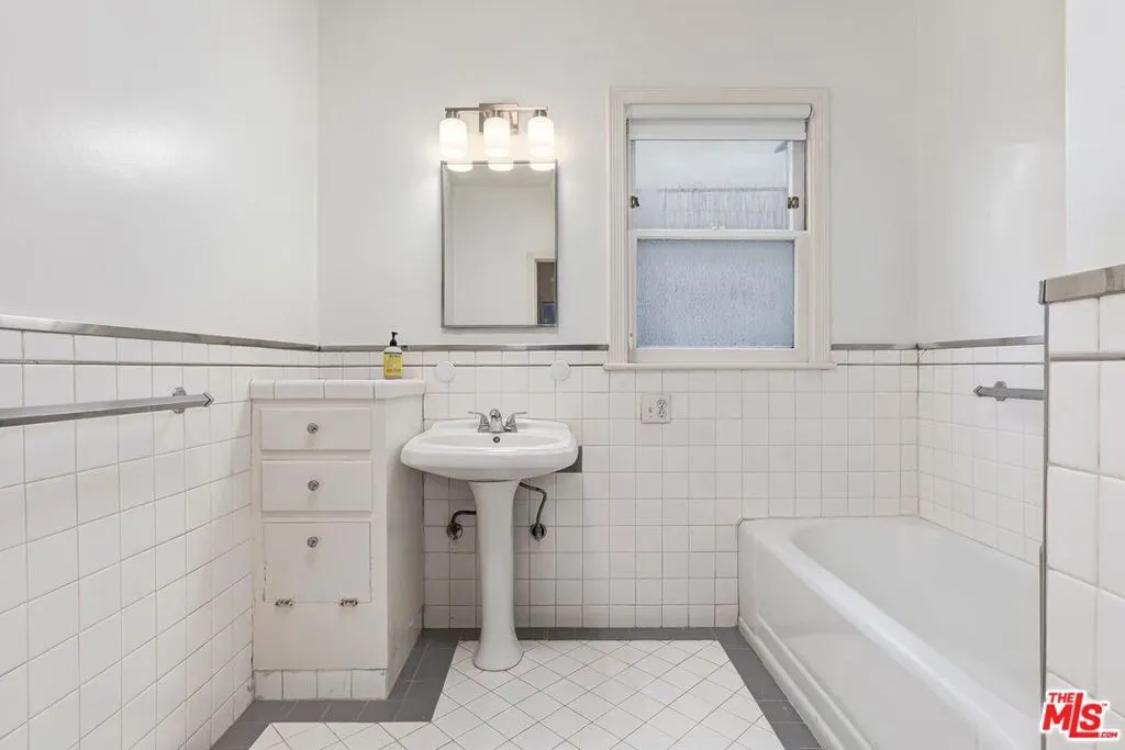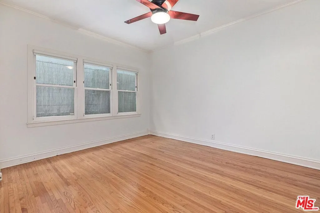 This secluded and spacious 1-level rear unit in an extraordinarily charming 1930's Beverly Hills quadruplex is now available for a fortunate long-term tenant. Enter through a lovely gated brick courtyard into this pristine "home" with original character including gleaming wood floors and mouldings. Abundant natural light with high ceilings and a large beautifully updated kitchen. Grand living room and formal dining room (easily utilized as a den). Sizeable private laundry room in the unit. Primary bedroom with a walk-in closet. Private 1 car detached garage with easy alleyway access. The building is sited with intense curb appeal on a quiet road featuring a high Walk Score and moments to the best of Beverly Hills, Beverlywood, and the Westside.