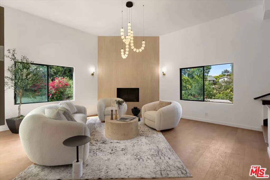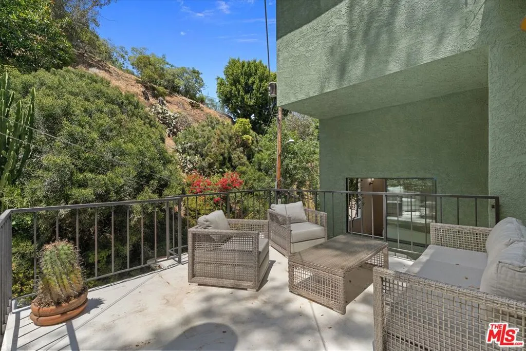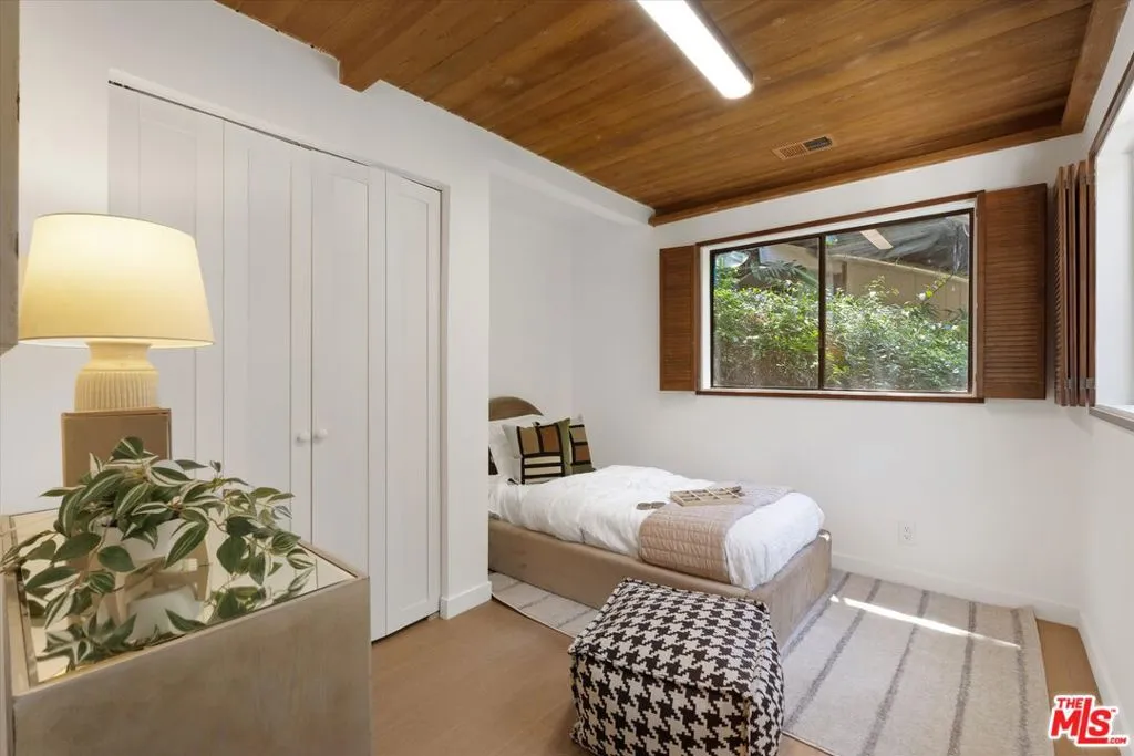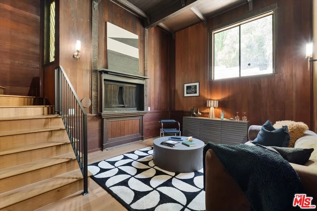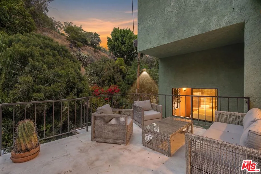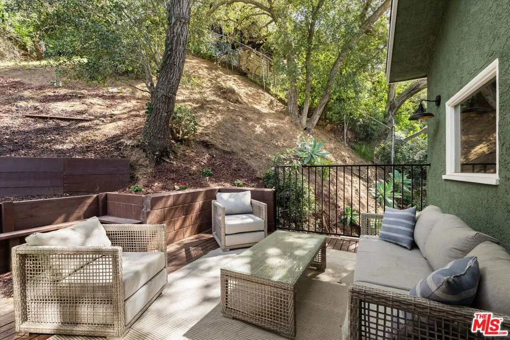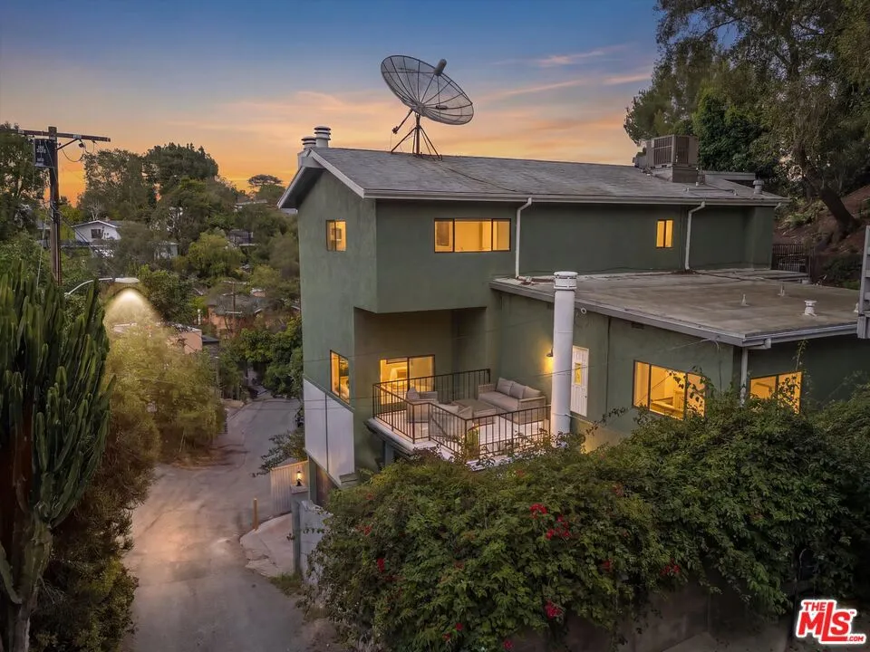 Nestled on a quiet cul-de-sac in the heart of iconic Laurel Canyon, 8506 Oak Court is a truly special and character-rich retreat surrounded by canyon views, mature trees, and legendary history. Originally built in the 1950s, this unique home blends timeless charm with thoughtful updates, showcasing original wood siding, stained glass details, and an inviting lower-level den in the original portion of the residence. As you move through the home, a separate upper level offers incredible creative flexibility with a desk area ideal for a studio or workspace, plus a closet potential for use as a vocal booth. At the top of this wing, you'll find a living room, dining area, kitchenette, bedroom, bathroom, and a beautiful patio overlooking the canyon.An expansive addition completed in 1970 introduces a spacious second wing with 3 bedrooms and 2.5 baths, highlighted by dramatic two-story ceilings in the living room, a beautiful fireplace, engineered hardwood floors, updated lighting, and a well-appointed kitchen featuring a wine rack, beverage fridge, pantry, and adjacent laundry room. A powder room and formal dining area add convenience, while the oversized two-story, two-car garage includes a dumbwaiter that brings bags and groceries directly up to the dining level. Upstairs, soaring arched wood ceilings create a striking architectural statement. This level includes an office or bedroom with fireplace and canyon views, an additional bedroom, a full hallway bath, sauna, second laundry area, and an extraordinary primary suite with sweeping views, a walk-in closet, freestanding tub, large shower, double vanity, private water closet, and direct access to a private deck.Outside, the terraced hillside is lined with lush plantings and a built-in walkway leading upward for even more immersive views of Laurel Canyon. Just moments from Hollywood, Laurel Canyon Market, beloved hiking trails, and the rich music history of the neighborhood, this one-of-a-kind property offers an inspiring lifestyle in one of Los Angeles' most storied enclaves. Come experience it in person.