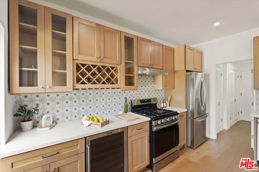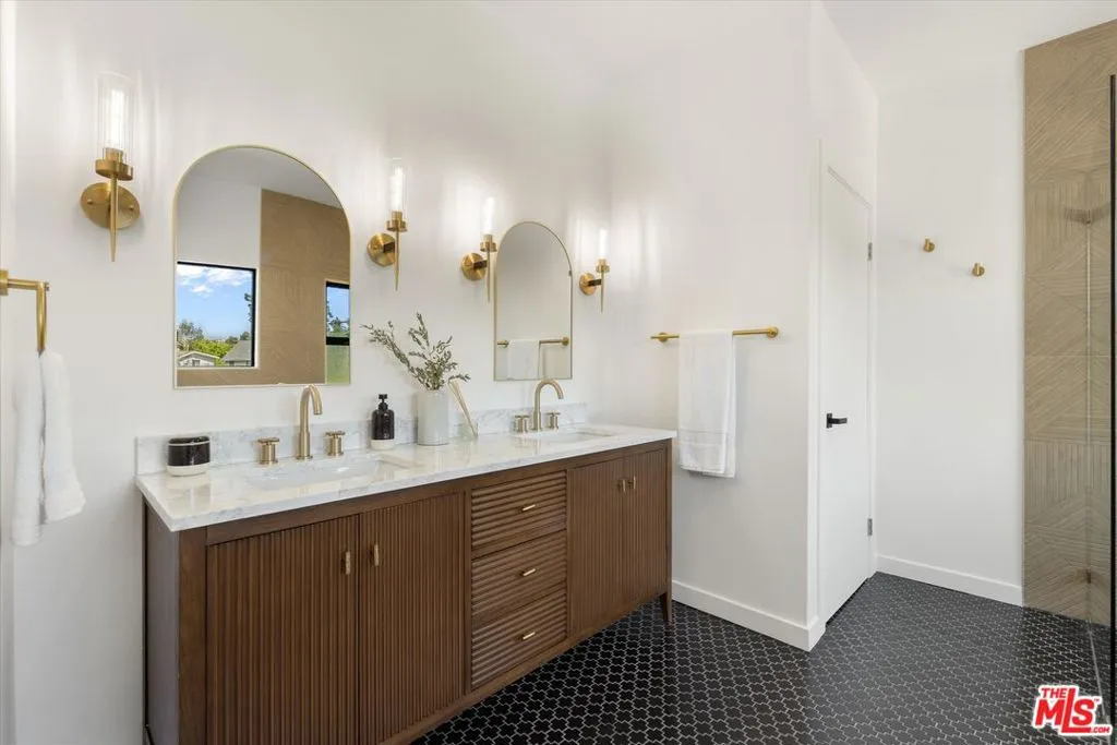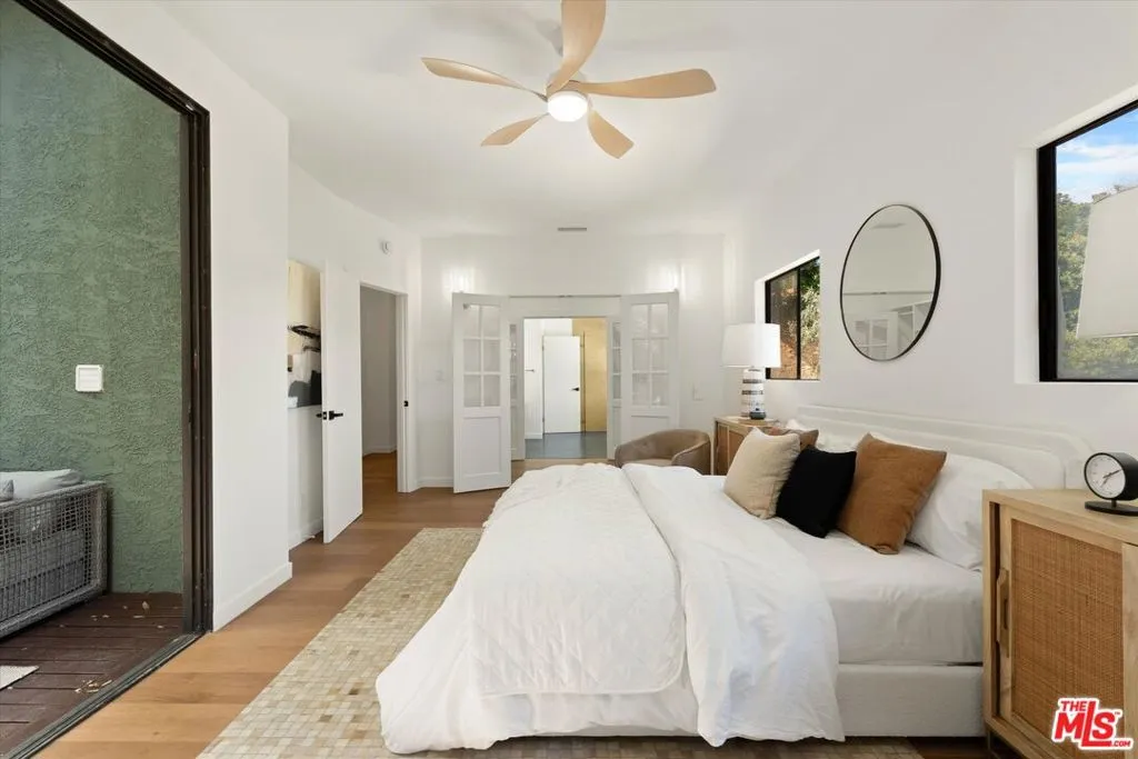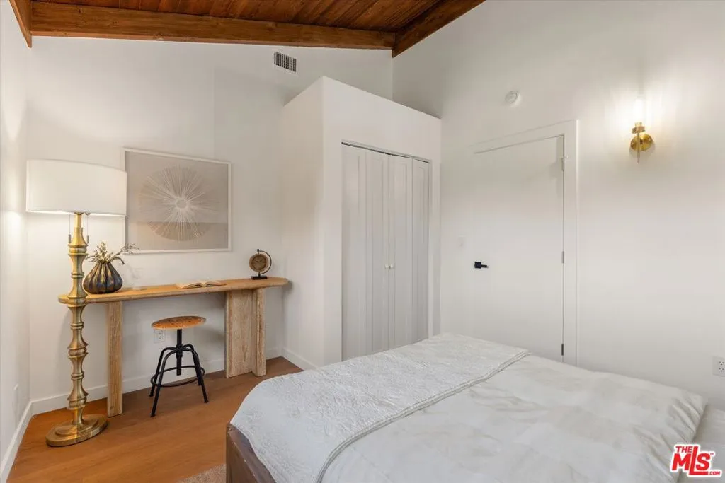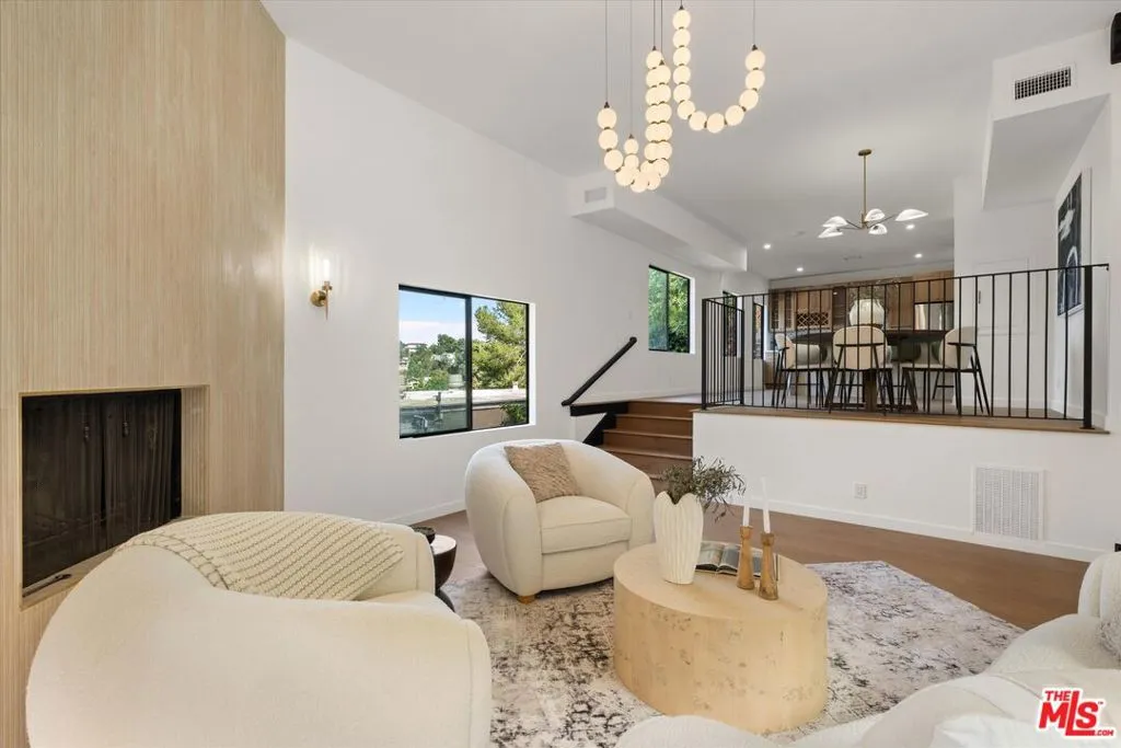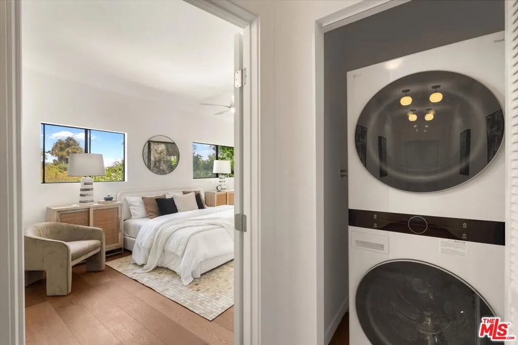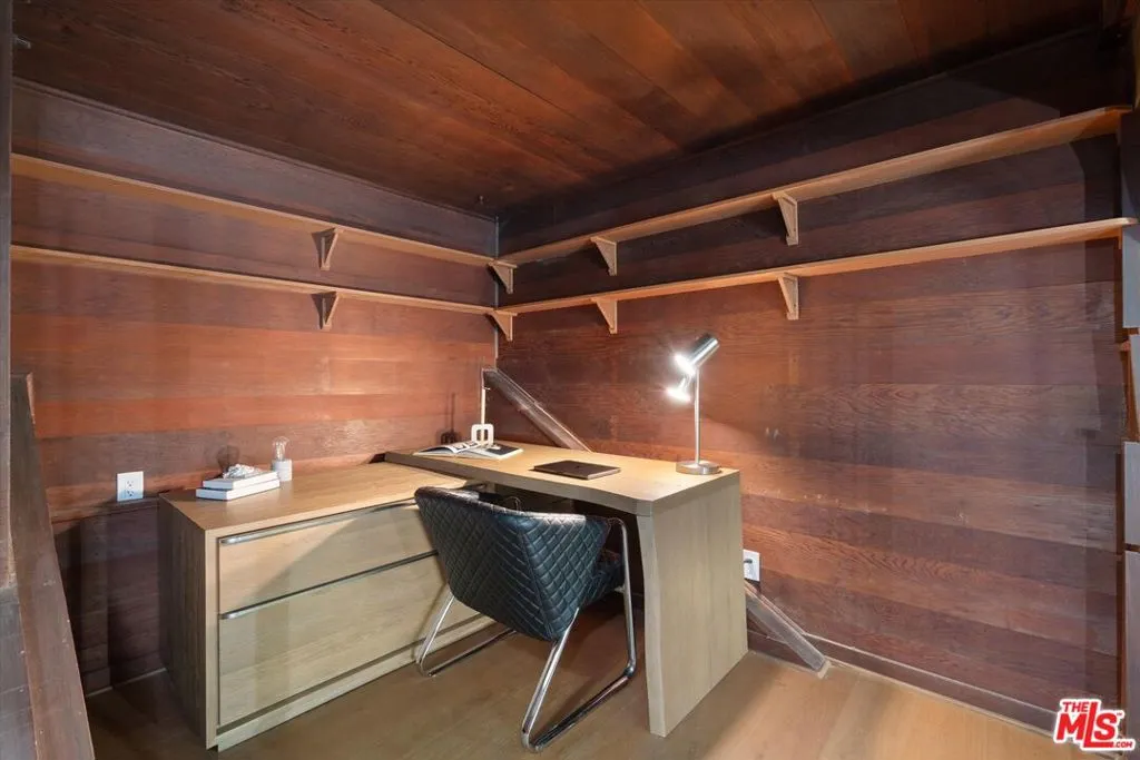Nestled on a quiet cul-de-sac in the heart of iconic Laurel Canyon, 8506 Oak Court is a truly special and character-rich retreat surrounded by canyon views, mature trees, and legendary history. Originally built in the 1950s, this unique home blends timeless charm with thoughtful updates, showcasing original wood siding, stained glass details, and an inviting lower-level den in the original portion of the residence. As you move through the home, a separate upper level offers incredible creative flexibility with a desk area ideal for a studio or workspace, plus a closet potential for use as a vocal booth. At the top of this wing, you'll find a living room, dining area, kitchenette, bedroom, bathroom, and a beautiful patio overlooking the canyon.An expansive addition completed in 1970 introduces a spacious second wing with 3 bedrooms and 2.5 baths, highlighted by dramatic two-story ceilings in the living room, a beautiful fireplace, engineered hardwood floors, updated lighting, and a well-appointed kitchen featuring a wine rack, beverage fridge, pantry, and adjacent laundry room. A powder room and formal dining area add convenience, while the oversized two-story, two-car garage includes a dumbwaiter that brings bags and groceries directly up to the dining level. Upstairs, soaring arched wood ceilings create a striking architectural statement. This level includes an office or bedroom with fireplace and canyon views, an additional bedroom, a full hallway bath, sauna, second laundry area, and an extraordinary primary suite with sweeping views, a walk-in closet, freestanding tub, large shower, double vanity, private water closet, and direct access to a private deck.Outside, the terraced hillside is lined with lush plantings and a built-in walkway leading upward for even more immersive views of Laurel Canyon. Just moments from Hollywood, Laurel Canyon Market, beloved hiking trails, and the rich music history of the neighborhood, this one-of-a-kind property offers an inspiring lifestyle in one of Los Angeles' most storied enclaves. Come experience it in person.