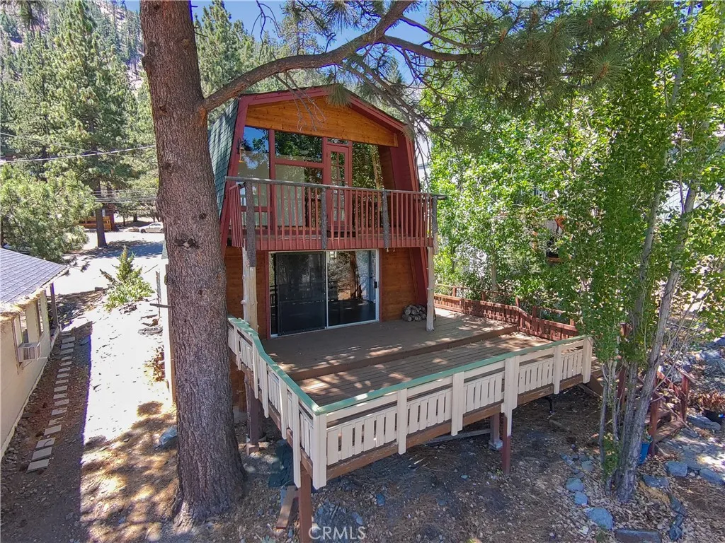 East Side of Wrightwood and perched among the trees with a fabulous view of the high desert. 2068 Slippery Elm Rd is an iconic Gambrel Style Home perfect for a mountain getaway or primary residence. Located with a flat lot with ease of parking and usable space for your imagination. Front and rear decks sprawl throughout the exterior making indoor and outdoor usable space a part of the charm of the home. As you enter the spacious home you are greeted with the living room and fireplace inviting you into the exquisite space. The quaint kitchen separates the living room and dining area. The modern style laundry is conveniently located indoors and will be included complimentary with the home. Soak in the full bath tub for the most relaxing options to wash away your day. The sliding doors from front and back open up to bring in a zephyr of mountaineous breeze. With the natural light and sound of whimsical pines you will be engulfed in best Wrightwood has to offer. The geourgeously crafted stairs leads you upstairs to 2 lofty bedrooms. The primary bedroom is complimented with an elevated deck that highlights the view of the desert.