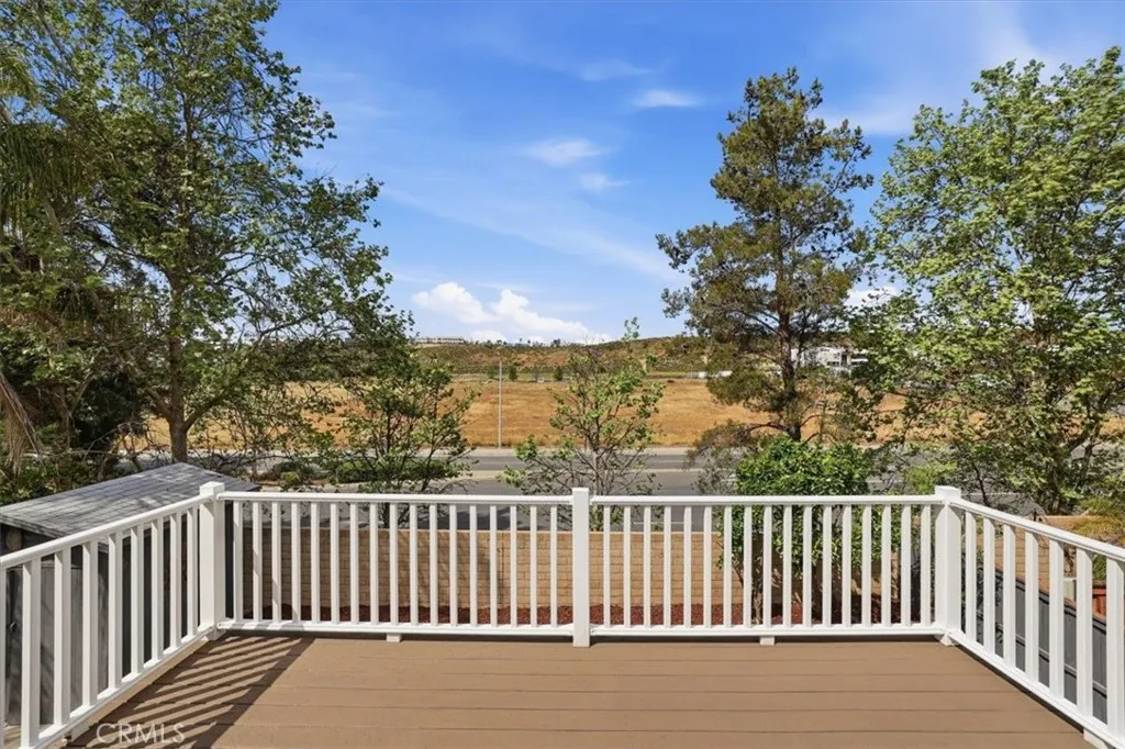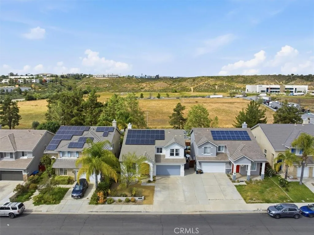 This stunning 4-bedroom, 2.5-bath home offers approximately 2,470 square feet and sits on a quiet cul-de-sac with beautiful curb appeal. Step into this impeccably clean and upgraded home through a welcoming entry. Inside, high ceilings create an open feel, complemented by gorgeous wood and tile flooring throughout (no carpet), plantation shutters, ceiling fans, and a cozy fireplace in the family room. The kitchen features a central island, built-in shelving, a 6-burner GE Cafe stainless steel stove with double ovens, a KitchenAid dishwasher, and a large walk-in pantry, offering plenty of space for everyday living and entertaining. Additional upgrades include tankless water heater, whole house water softener, newer HVAC system, a thermostatically controlled attic ventilation fan and high-end Toto heated toilets throughout. The primary suite offers a spacious setting with doors leading to a large Trex deck with great views. The primary bathroom has been completely remodeled and showcases premium finishes, including Hansgrohe and Restoration Hardware fixtures, Walker Zanger tile, and Hinkley lighting, marbel countertops along with custom cabinetry featuring pull-out shelving and soft-close drawers. This spacious bathroom also includes a large walk-in closet with an Elfa organization system.. Most of the interior has just been repainted, offering a fresh & clean canvas for new owners. The exterior is enhanced by a welcoming double door entry and a low-maintenance front and backyard with extensive hardscape. The backyard features artificial turf, garden wall planters, and a storage shed that will remain, creating a private setting with space to relax or entertain. The garage includes built-in storage racks for added organization, and the extra-wide driveway provides additional parking flexibility. A standout feature of the home is the 22-panel owned solar system with backup battery—providing energy efficiency without the added cost of a lease. The community has no HOA, a very low tax rate, and is centrally located near everything in Murrieta. Welcome home!