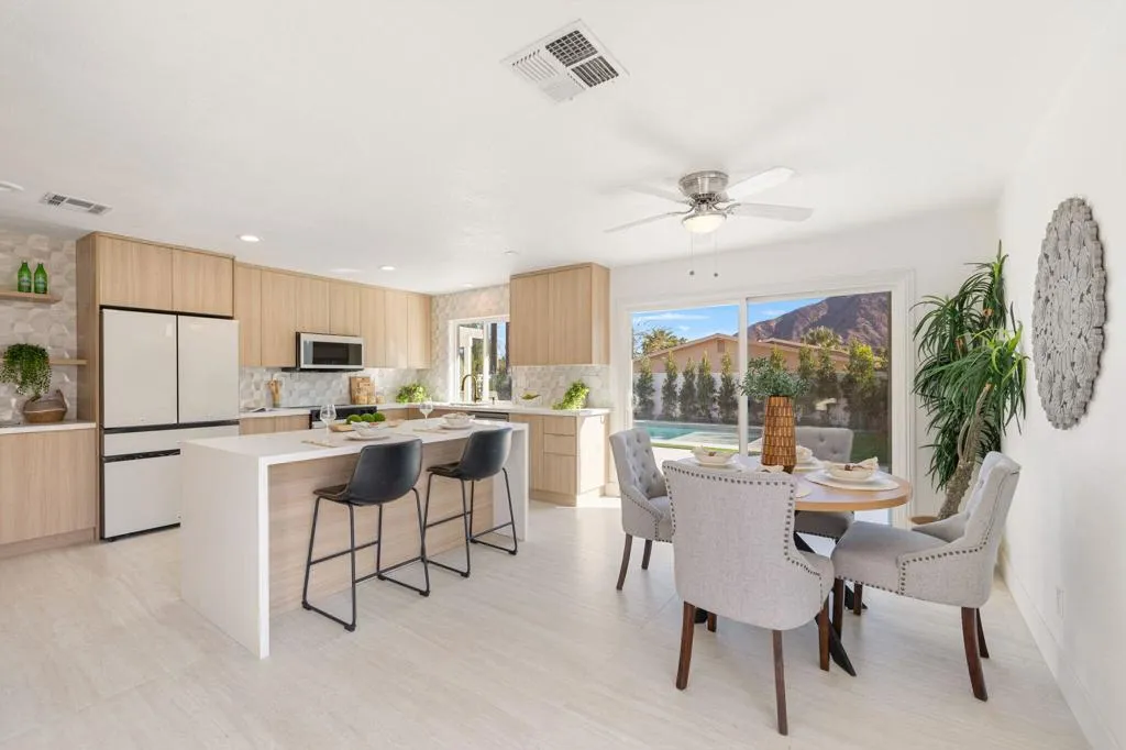 Private Spanish Retreat with Pool & Mountain Views High In The La Quinta Cove. This completely reimagined Spanish-style residence, set high in the La Quinta Cove with sweeping mountain views and exceptional privacy. Fully remodeled from top to bottom, this 4-bedroom, 3 bath home blends timeless charm with modern luxury.The brand new pool anchors a ficus-lined backyard retreat, offering serene outdoor living with dramatic mountain backdrops. Inside, the light-filled layout flows effortlessly from the stunning designer kitchen into the living room, highlighted by a custom fireplace and refined architectural details throughout.The primary suite is a true sanctuary, featuring a beautifully designed modern bathroom with designer finishes. A separate ADU adds incredible flexibility, complete with its own full kitchen, bathroom, walk-in closet, dedicated AC, and private living space--ideal for guests, extended family, or income potential.From the mature olive tree and low-maintenance Mediterranean landscaping out front to the thoughtful finishes inside, every detail has been curated. Completely redone, full of character, and designed for the La Quinta lifestyle--this is Cove living at its best.