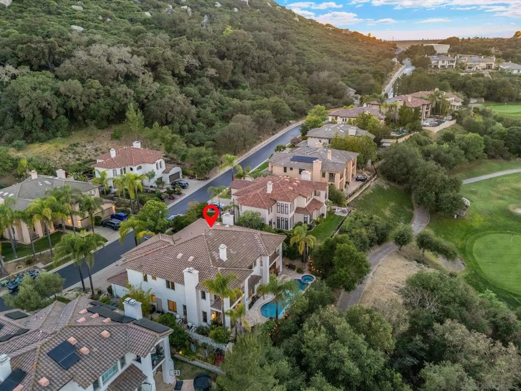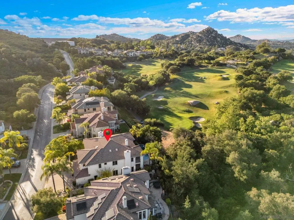 Welcome to the prestigious, resort-style community of 'Mount Woodson' in Ramona! Enjoy panoramic mountain & golf course VIEWS from this huge 5BR/ 4.5BA home, the largest floor-plan Mt. Woodson has to offer! Home sits on a large, 1/5 Acre lot w/ private Pool & Spa, mature tropical landscape & overlooks the golf course and surrounding mountain ranges. Interior features include upgraded Low-E windows & French doors throughout w/ plantation shutters & high-quality blinds, a dramatic vaulted ceiling throughout the main living area allowing for tons of natural light inside the home, huge ‘great’ room w/ living & family areas + a full-size dining room just off the open concept kitchen w/ cherry wood cabinetry, granite slab counters & all stainless-steel appliances, recessed lighting & a large kitchen island, huge primary BR upstairs w/ 2-way fireplace shared between the 2 rooms of the spacious master retreat & 3 balconies surrounding the exterior front & back w/ VIEWS in every direction! WOW, this is a must-see! Other features include a full-size laundry room upstairs for convenience, luxurious primary bathroom w/ dual-entry walk-in closet, versatile office/bedroom with custom built -in cabinetry, multiple French doors to all the inviting outdoor spaces surrounding the home, 3 fireplaces in the living, family & primary bedroom & more! The private, in-ground Pool & Spa are elevated just above the golf course & sit surrounded w/ mature, tropical landscape, boasting breathtaking VIEWS from the backyard overlooking all the scenic beauty & majestic rolling hills of the area! 3-Car attached garage w/ storage. Low maintenance landscape & turf surround the grounds. Tucked away behind the gates of extremely desirable Mount Woodson, literally walking distance to ‘Potato Chip’ Rock & nearby hiking & biking trails, just minutes into Downtown Ramona & nearby schools for all ages or right down the hill to all Poway has to offer!