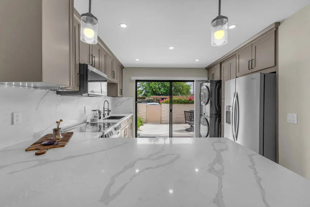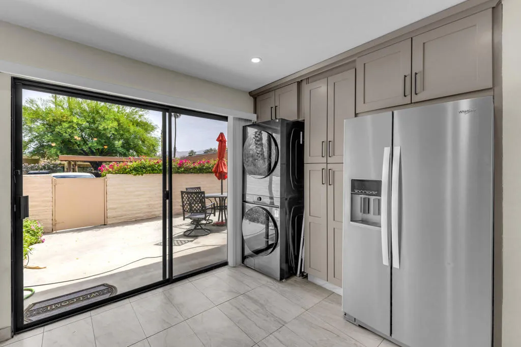 Welcome to this adorable two-bedroom, two-bathroom corner unit condo in Palm Springs. This home features beautiful upgrades throughout, including a remodeled kitchen and updated bathrooms, along with the convenience of a full-size washer and dryer. The private patio offers a perfect space to relax and enjoy the desert lifestyle.Ideally located within the community, this condo is just steps from the swimming pools, tennis courts, and pickleball, providing resort-style amenities right outside your door. The neighborhood is well-maintained and offers a welcoming atmosphere, all while being just minutes from downtown Palm Springs and Rancho Mirage, where you will find dining, shopping, and entertainment.Whether you are searching for a vacation getaway or a full-time residence, this property offers comfort, convenience, and an ideal location. Schedule your private showing today and come experience all that this home has to offer.