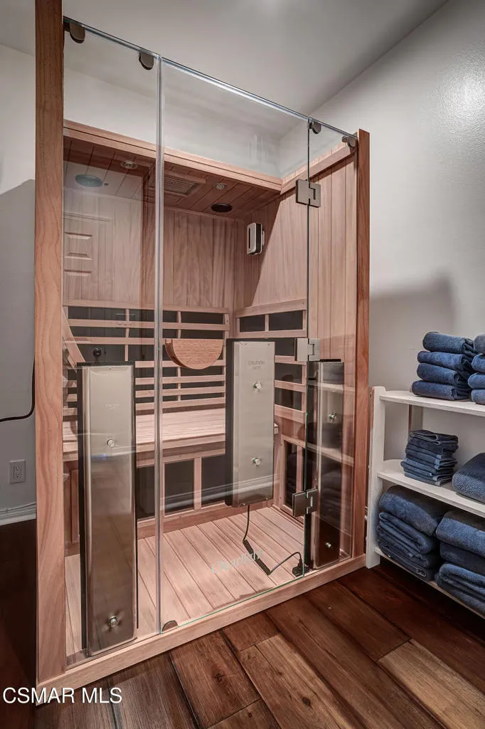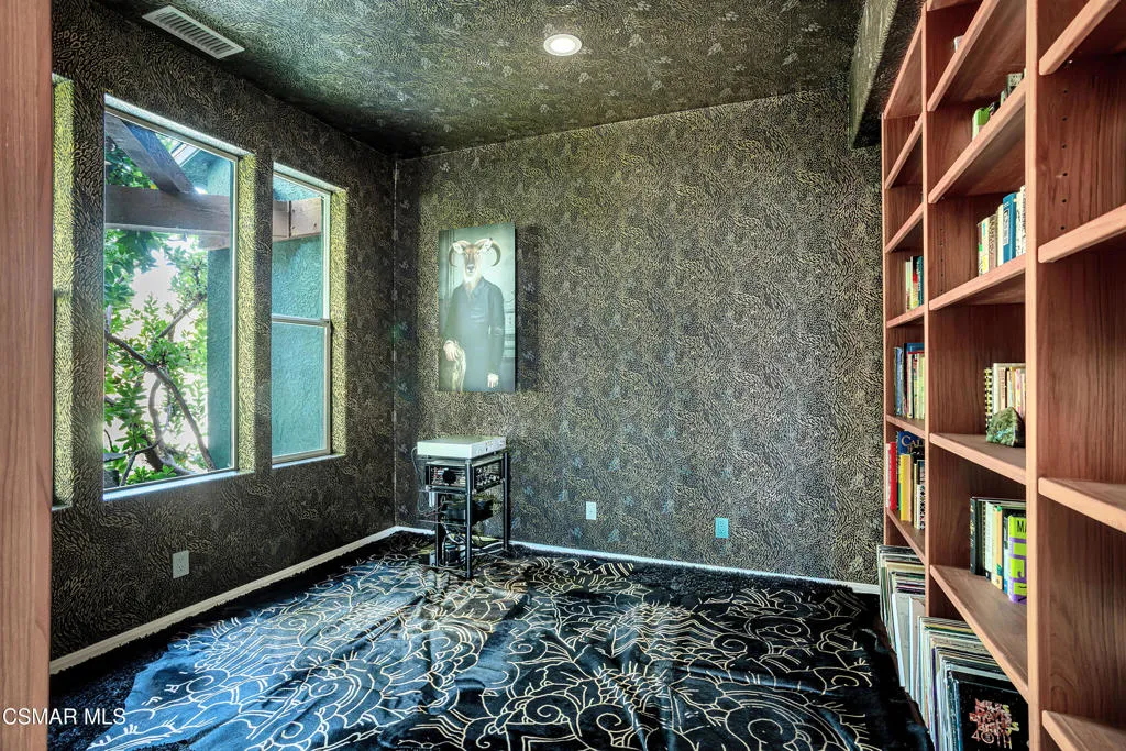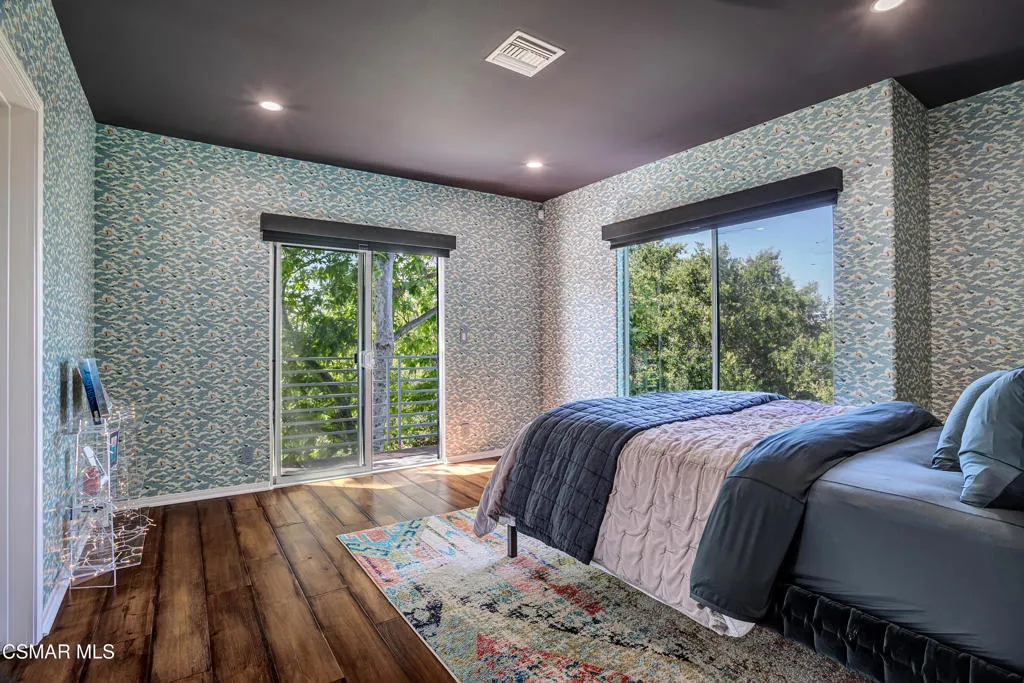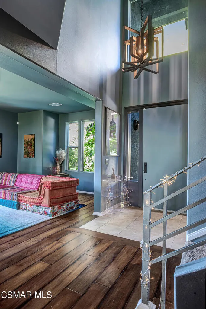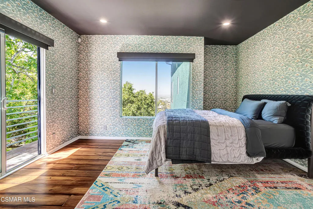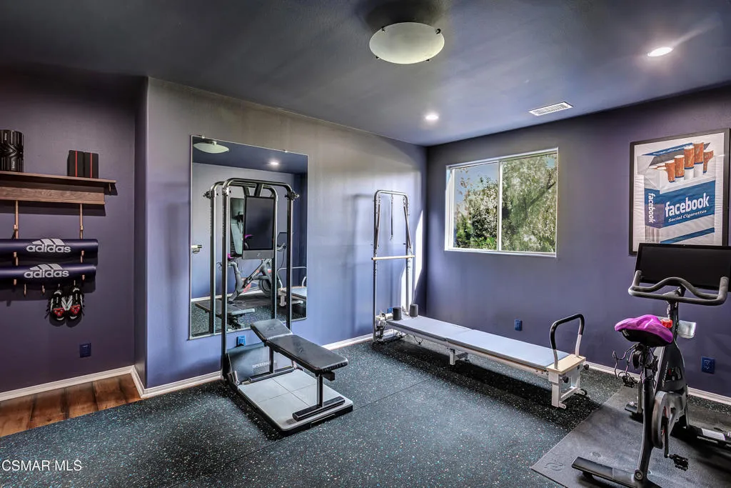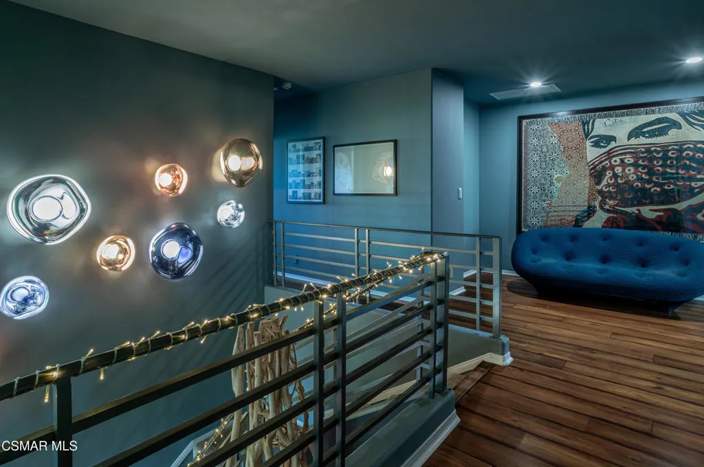 STUNNING custom estate with breathtaking PANORAMIC VIEWS of the Conejo Valley! Perched atop a scenic mountain on over 3 acres, this exceptional property offers nearly 4,000 square feet of refined living space, featuring 4 bedrooms and 4 bathrooms. Step inside to soaring ceilings, hardwood flooring, recessed lighting and an abundance of windows that flood the home with natural light while perfectly framing the incredible vistas. The expansive chef's kitchen is designed for both everyday living and entertaining, showcasing granite countertops, stainless steel appliances, rich maple cabinetry and an oversized center island with seating--all opening seamlessly to the inviting family room with a striking fireplace. The main level also features a gorgeous side deck with mountain views, a dedicated office, formal dining room, guest bathroom, laundry room, pantry and direct access to the 3-car garage, offering both functionality and convenience. Upstairs, the luxurious primary suite is a true retreat, complete with its own fireplace, private balcony capturing sweeping mountain views, a spacious ensuite bathroom with dual vanities and a generous walk-in closet. A secondary bedroom boasts a large glass slider leading to a private balcony with more stunning views, while the additional bedrooms offer ample closet space and picturesque surroundings. Two full guest bathrooms, a brand new infrared sauna for everyday luxury living, an office and a large gym or bonus room complete the upper level. Designed for ultimate indoor-outdoor living, the entertainer's backyard is nothing short of spectacular, featuring a pristine infinity pool, spa, cascading waterfall, fire pit and rose garden, all set against a dramatic natural backdrop. The expansive grounds provide ample space for entertaining/gardening and include a fruit orchard, as well as numerous outdoor amenities, with direct access to scenic community trails. Best yet, the home includes a Tesla roof with three backup batteries, so you can power your home with the sun and never miss a beat in a blackout. This one-of-a-kind view estate offers a rare opportunity to experience serene, elevated living surrounded by nature--yet just minutes from city conveniences. Welcome home!