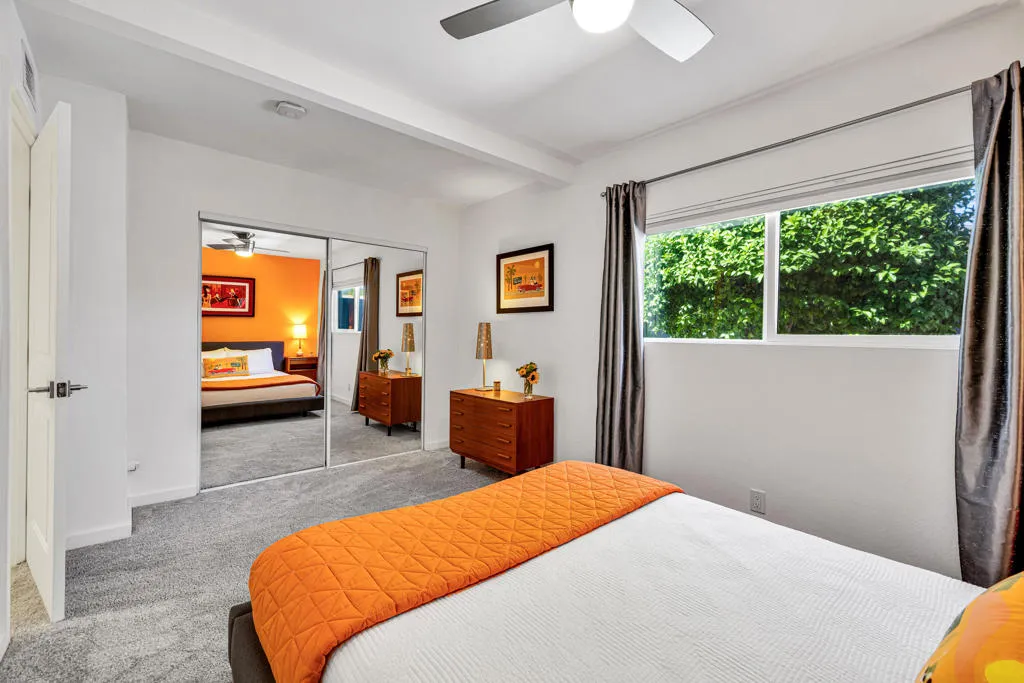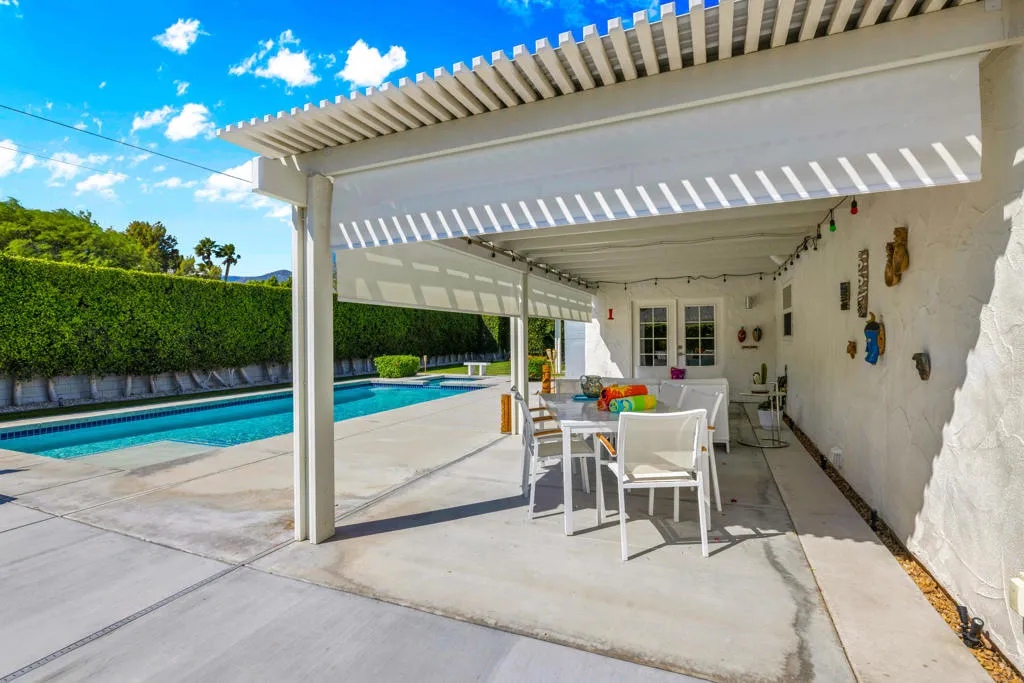 Beautifully upgraded 3-bedroom, 2-bath home featuring a private, resort-style backyard with pool and spa, mountain views, fruit trees, and multiple outdoor living spaces designed for relaxation and entertaining. Enjoy automated landscape lighting, Alumawood(r) patio covers, and immersive Sonos(r) audio that make outdoor living effortless.Inside, the home showcases extensive improvements including whole-house insulation, solid-core interior doors, updated electrical outlets, switches, and air ducts throughout, plus a fully renovated hall bathroom, and custom, birch utility and linen closet doors. The updated kitchen offers quality Samsung appliances including a dual-fuel convection range, microwave/vent, Bespoke counter-depth refrigerator (2025), as well as a brand-new Miele dishwasher (2026).Technology-forward features include a Crestron Home(r), whole-house automation system controlling lighting, patio shades, front door lock, and outdoor audio, along with a professional-grade WiFi and LAN network with CAT6 wiring in every room and connectivity for both Frontier fiber and Spectrum.Major system upgrades provide comfort and efficiency, including a Lennox Signature Series HVAC system, newer roof (2015) with elastomer recoating completed in 2024, REEM 50-gallon water heater, water softener connection, and Google/Nest smoke and carbon monoxide detection.Additional highlights include a fully insulated garage with its own heating and cooling system, LG washer and dryer, and epoxy floor. A concrete driveway and gated area for an RV offer many parking options. The neighborhood is currently capped for short term rental permits, but a Jr. Vacation Rental Certificate could be available. Check with the City of Palm Springs for details.