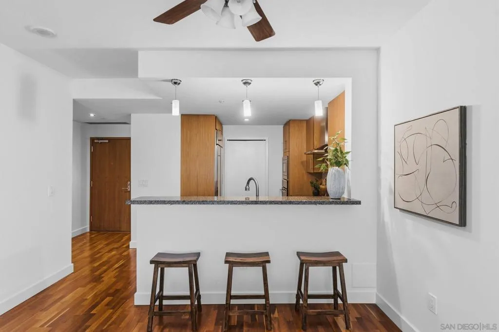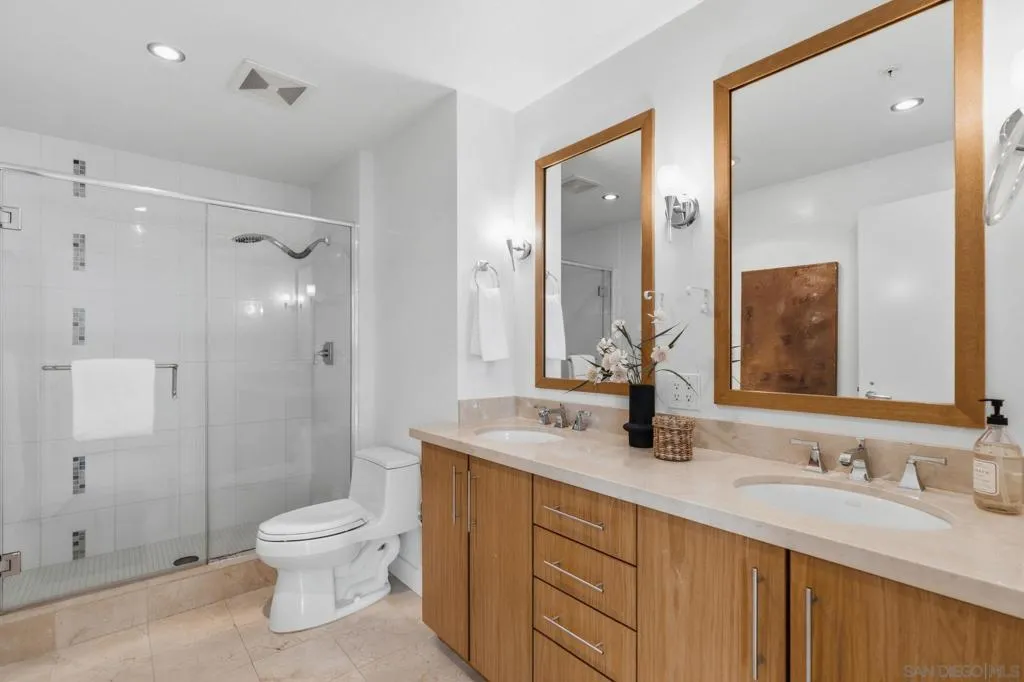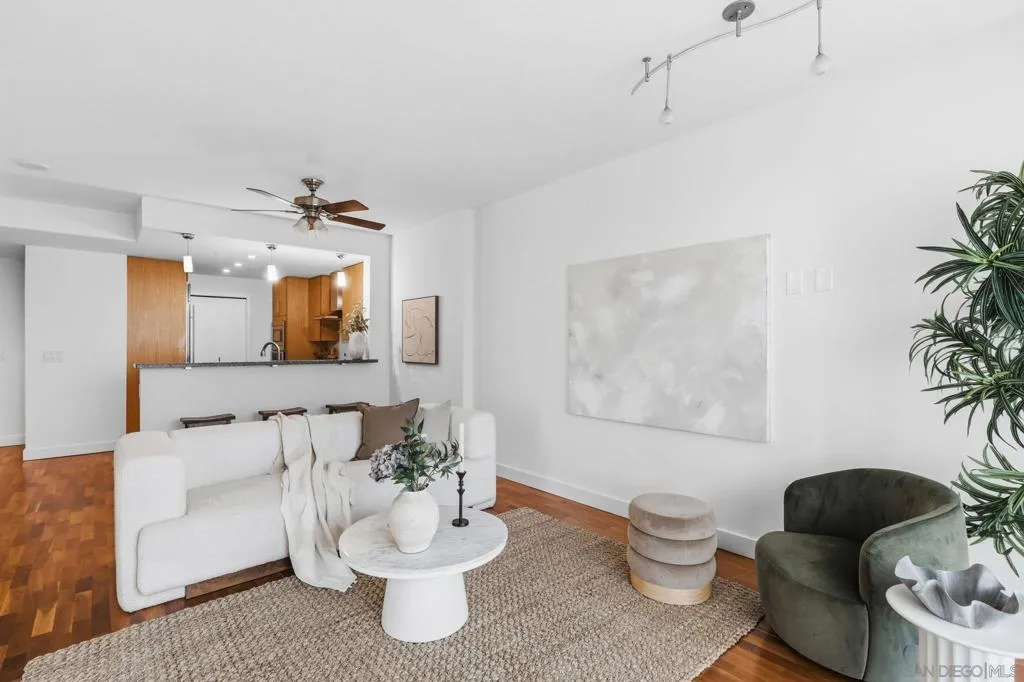 Welcome to The Legend! This 2 bed, 2 full bath unit is in one of the best buildings in downtown San Diego. This residence offers east-facing city views, great natural light, and a clean, chic interior in one of the most recognizable buildings in the neighborhood. Enjoy the views from both bedrooms and the living area, enhanced by large windows that bring in natural light and a private balcony that extends the living space outdoors. Inside, the home features wood flooring, fresh paint, and a functional layout that feels comfortable and easy to live in. In-unit laundry, air conditioning, and secured garage parking add everyday convenience, while the overall condition makes it easy to settle in right away. The Legend is known for its impressive amenities, including a fitness center, pool, sauna, steam room, on-site concierge, security, and well-appointed, large common areas with sweeping city views. One of the building’s standout features is its viewing deck overlooking Petco Park, giving residents access to a truly unique downtown experience. Well positioned in the heart of the city, this home offers a great combination of comfort, convenience, and access to everything downtown San Diego has to offer. Move-in-ready and offered at a great value this truly is one of the best properties and deals in Downtown.
