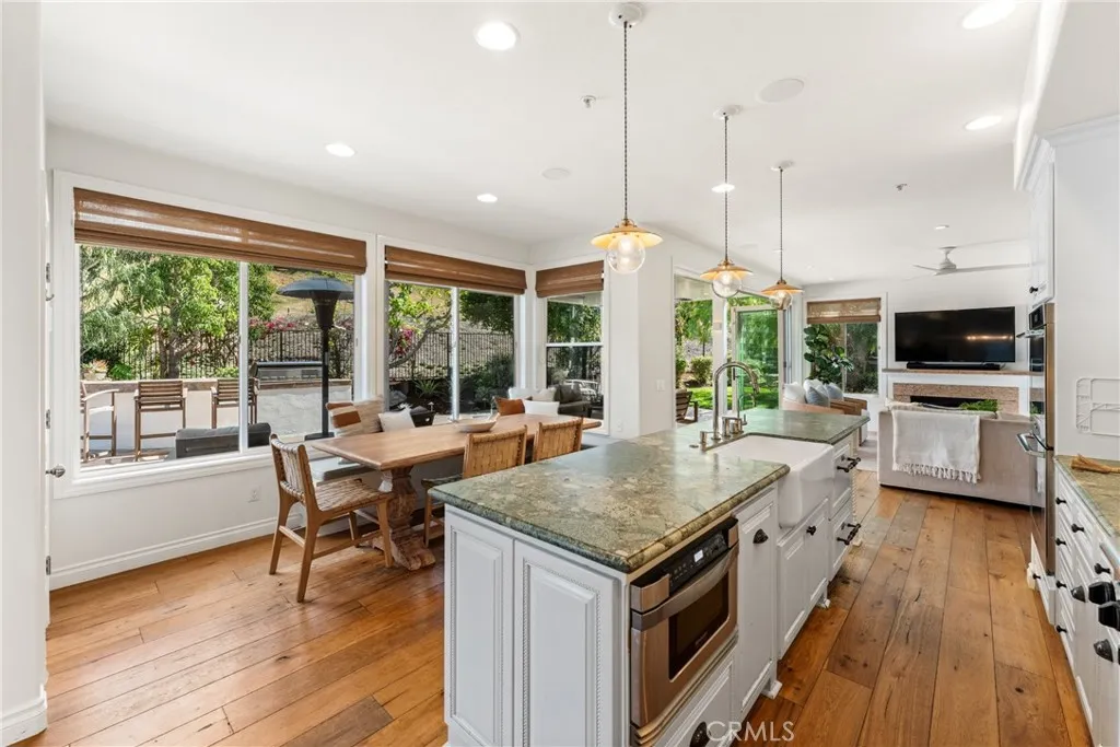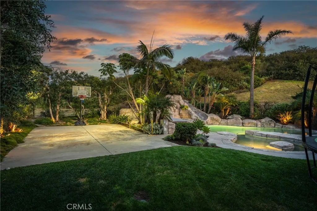 From the moment you arrive, there’s a sense that this is something truly special. Ideally positioned at the end of a quiet cul-de-sac in Rancho San Clemente, this exceptional residence sits on a rare, oversized lot, offering privacy, space, and an extraordinary resort-style setting. The backyard is designed for both relaxation and connection, featuring a custom saltwater pool with slide, sunning shelf, and waterfall, spa, built-in BBQ island, firepit, half basketball court, sprawling lawns and multiple gathering areas. Expansive bifold doors create a seamless indoor-outdoor experience, opening to a covered, heated patio with ceiling fans and ambient lighting, perfect for year-round enjoyment. Inside, the five-bedroom, three-bath home blends refined design with everyday comfort. A dramatic two-story entry is complemented by a striking double staircase with solid oak treads and iron railings. The gourmet kitchen is appointed with custom cabinetry, Dacor appliances, Brazilian granite countertops, farmhouse sink, and a generous center island, flowing effortlessly into the inviting family room. A main-level bedroom and beautifully updated bath offer flexibility, while upstairs includes three secondary bedrooms and a spacious primary suite with a private balcony and sitting area. Thoughtful upgrades include paid solar, dual AC, QuietCool whole house fan, new Anderson windows and doors upstairs, updated flooring, Ethernet wiring, integrated audio with exterior speakers, and whole-home water filtration with softener and reverse osmosis. Located near the Ridgeline Trail and just minutes to charming downtown San Clemente, featuring boutique shopping, locally acclaimed restaurants, and world-class surf breaks and beaches. This home offers an exceptional blend of comfort, style, and coastal lifestyle.