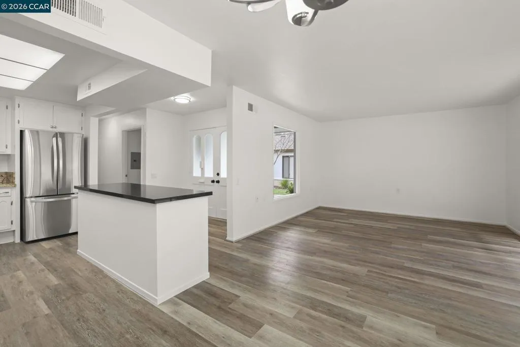 Desirable Yosemite model, NO STAIRS!! level-in unit with a private patio off the living and dining areas—perfect for pets or creating your own garden retreat. Ideally located close to the carport with storage. Enjoy being near the driving range, golf course, restaurant, and event center. Features include a beautifully remodeled bathroom with shower. A spacious primary bedroom with ½ bath and dressing area, in-unit washer and dryer, and abundant closet space. Freshly painted throughout with new vinyl plank flooring. Carport building #246, space #7 Experience the exceptional lifestyle of Rossmoor, the premier 55+ active adult community offering an array of amenities: 27-holes of golf, tennis & pickleball courts, lawn bowls, swimming pools, scenic hiking trails, a movie theatre, state-of-the-art fitness center, art studios.